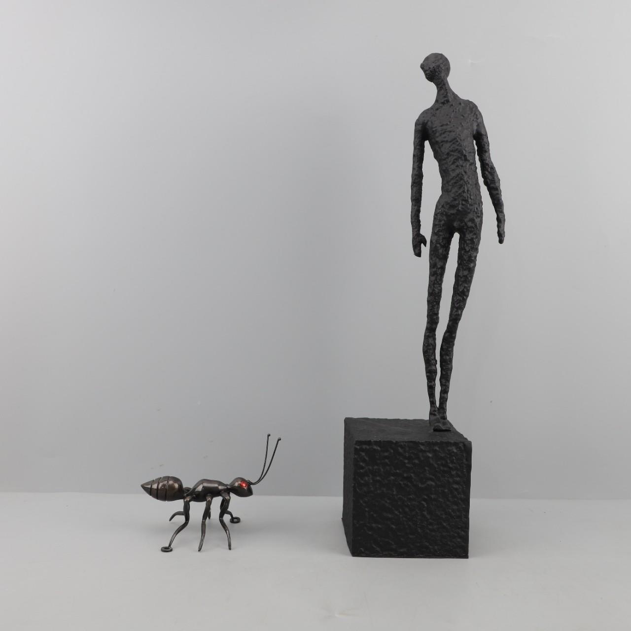 装欧式创意简0453约铸铁望人物雕眺塑摆件办室卧室书房客厅家居饰