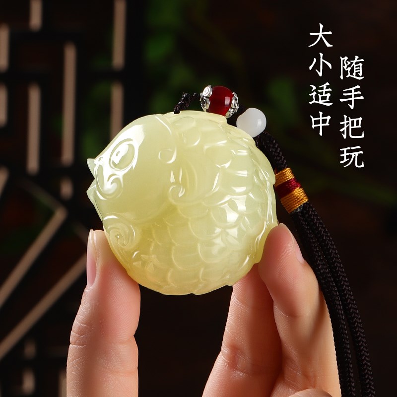 天然玉石年年有余锦鲤鱼手把件家居桌面装饰品解压把玩高级感礼物