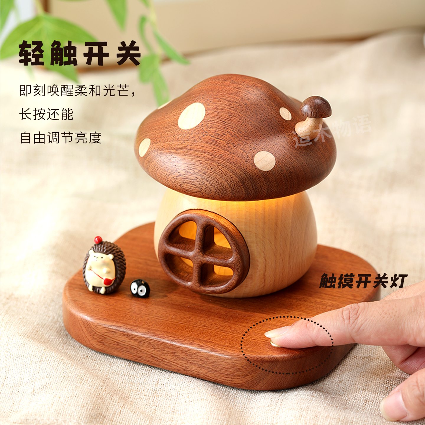 蘑菇屋小夜灯实木卧室床头婴儿喂奶睡眠灯儿童房装饰伴睡充电礼品