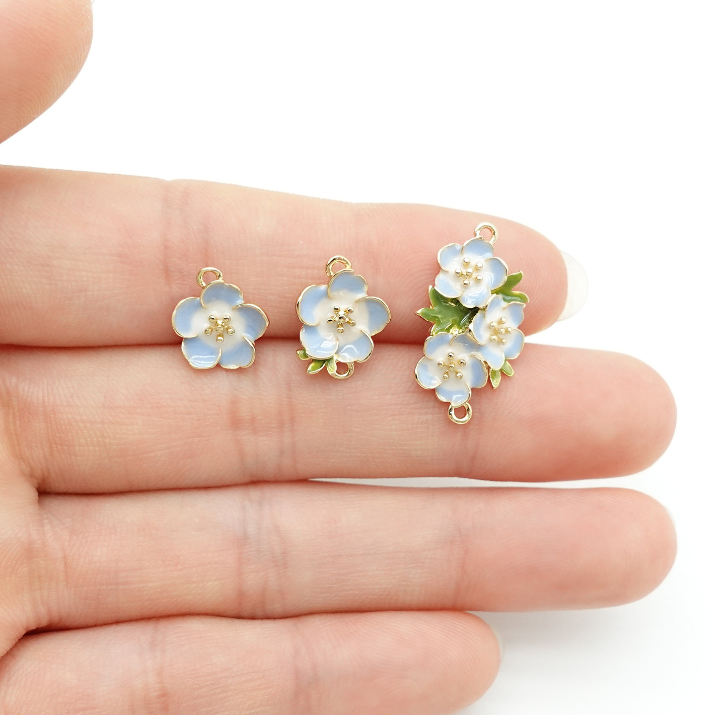 贵和配件立体蓝色粉蝶花挂坠拉链扣日本进口kiwa锌合金镀色