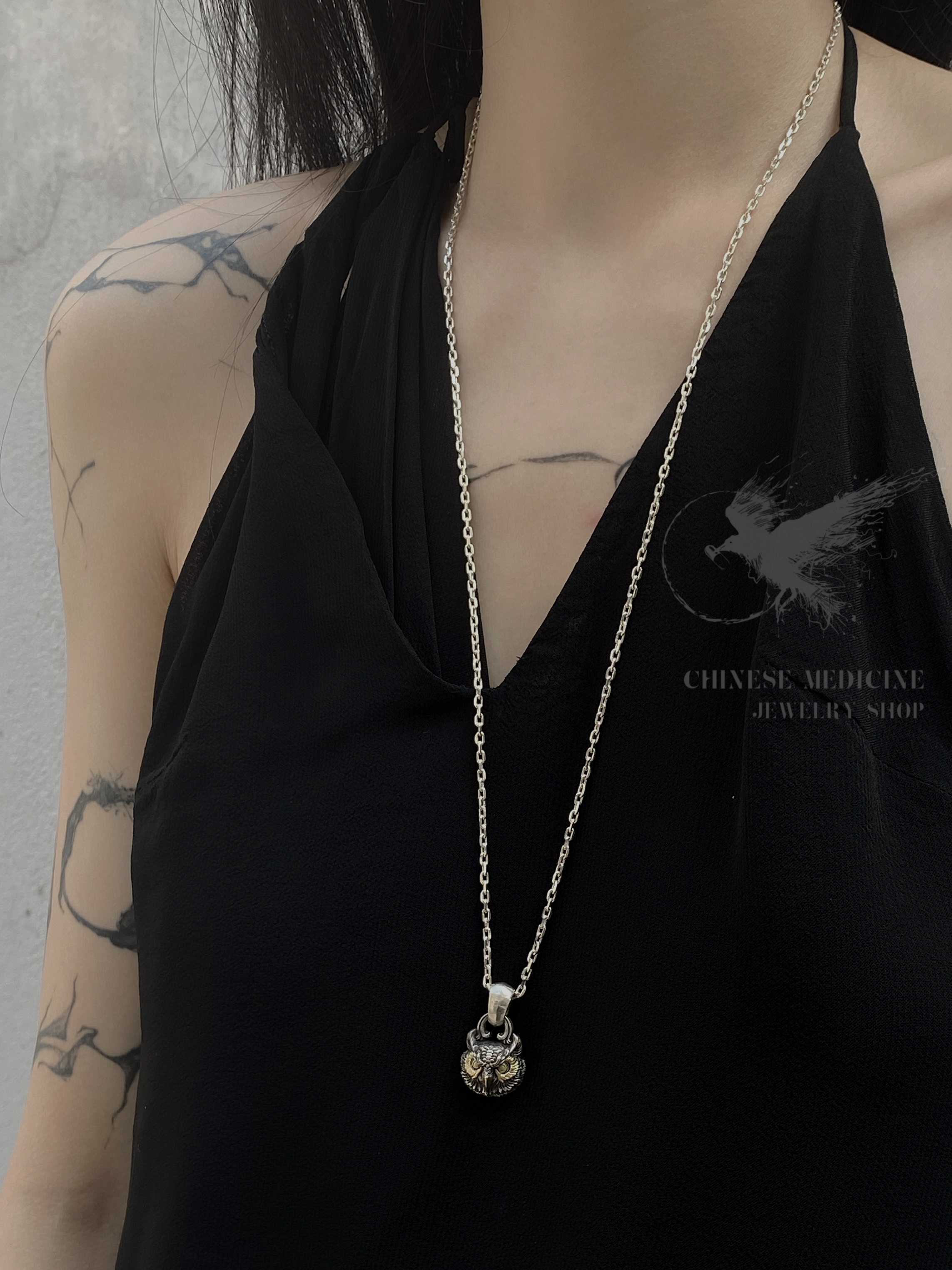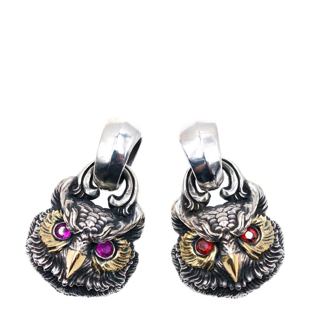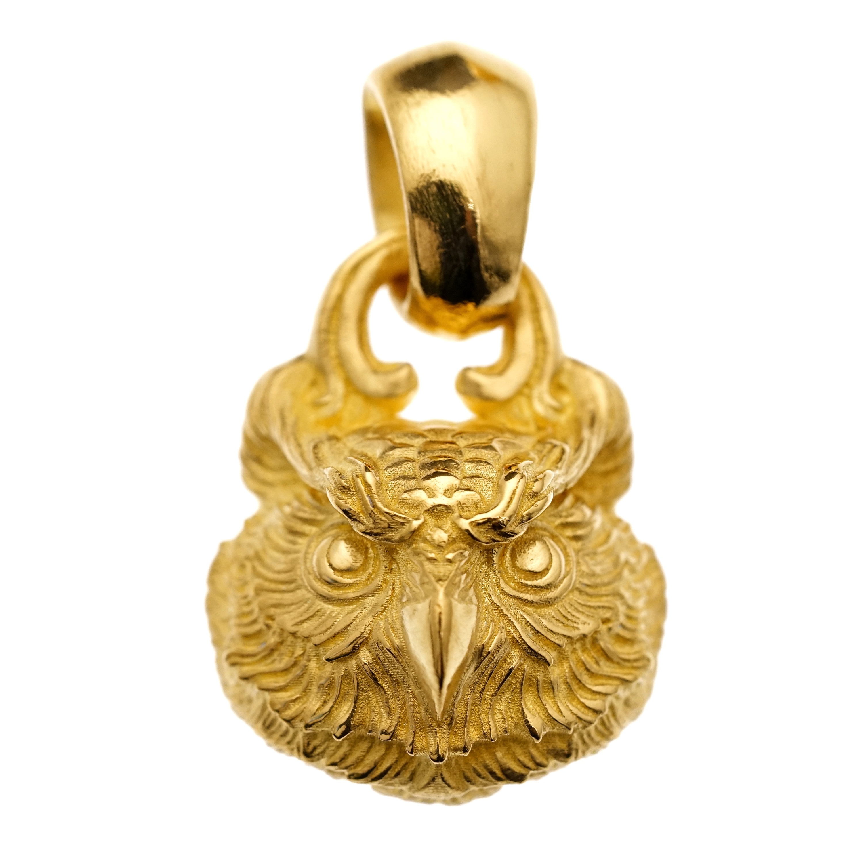 渡鸦工作室守护系列猫头鹰吊坠18k黄金925银镶嵌饰动物手工雕刻