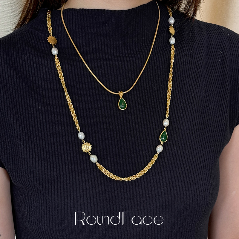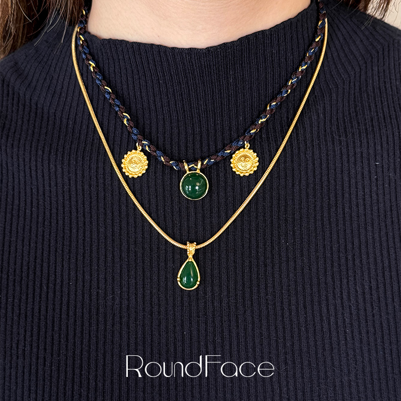 RoundFace炼金术系列祖母绿水滴项链金小众高级感轻奢女法式日常