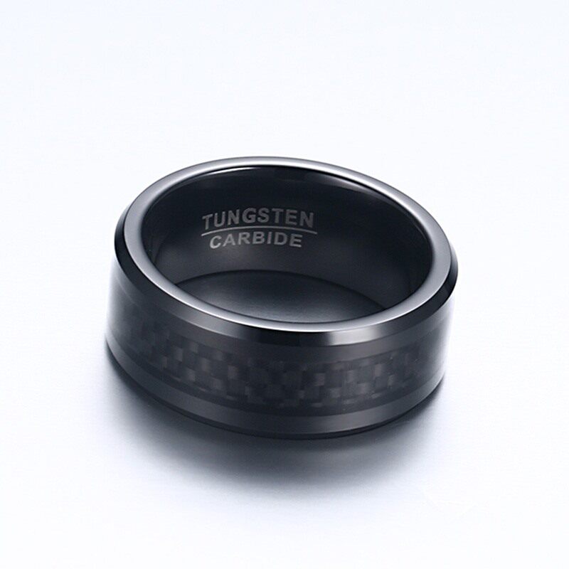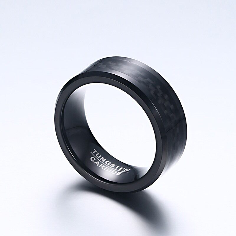 情人节欧美黑色碳纤维钨钢戒指男士钨金指P环个性潮人戒子刻字