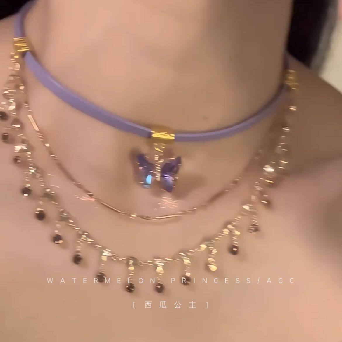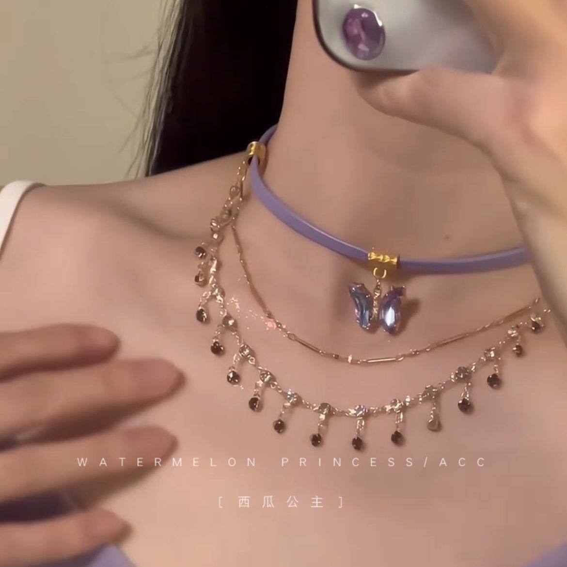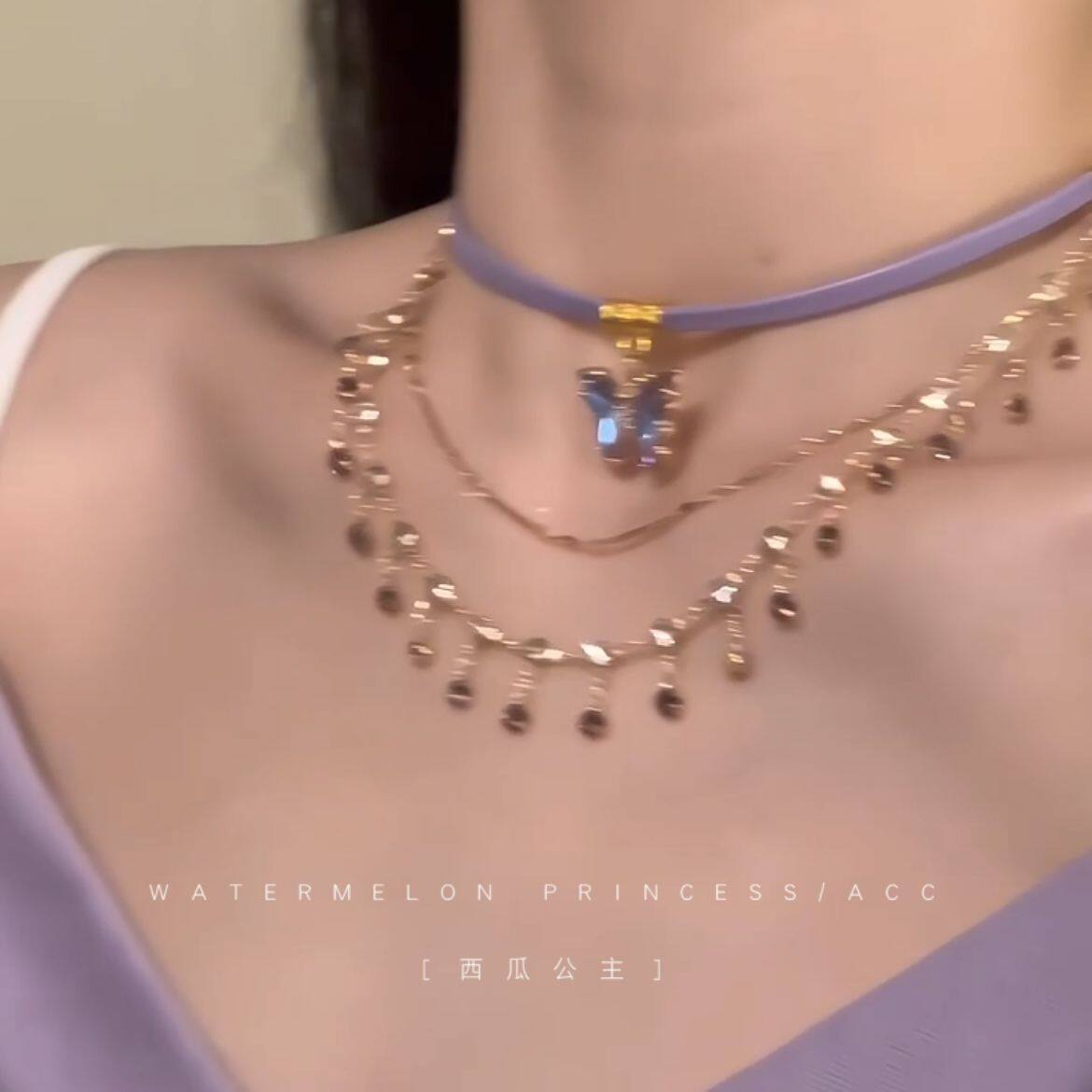 「香芋紫蝶」紫色蝴蝶项链女款2024新款多层叠戴锁骨链超夏季配饰