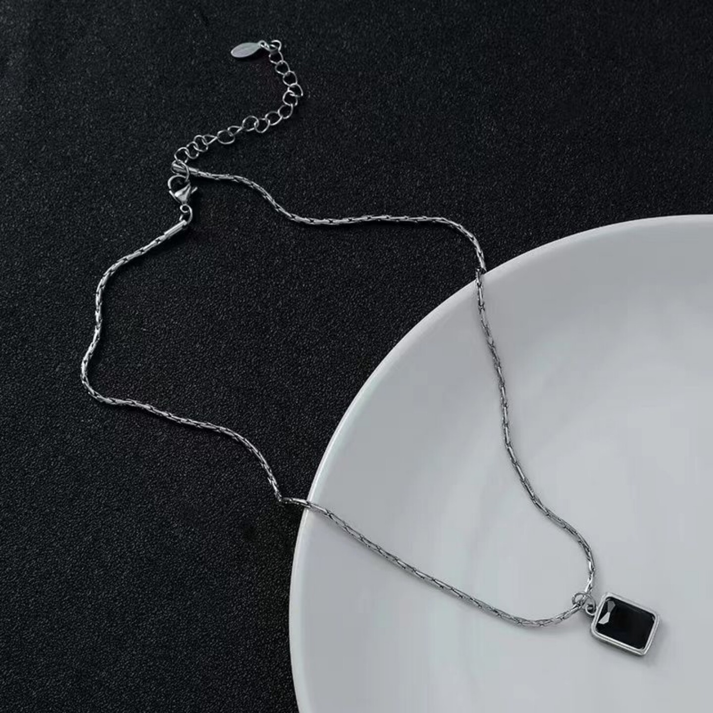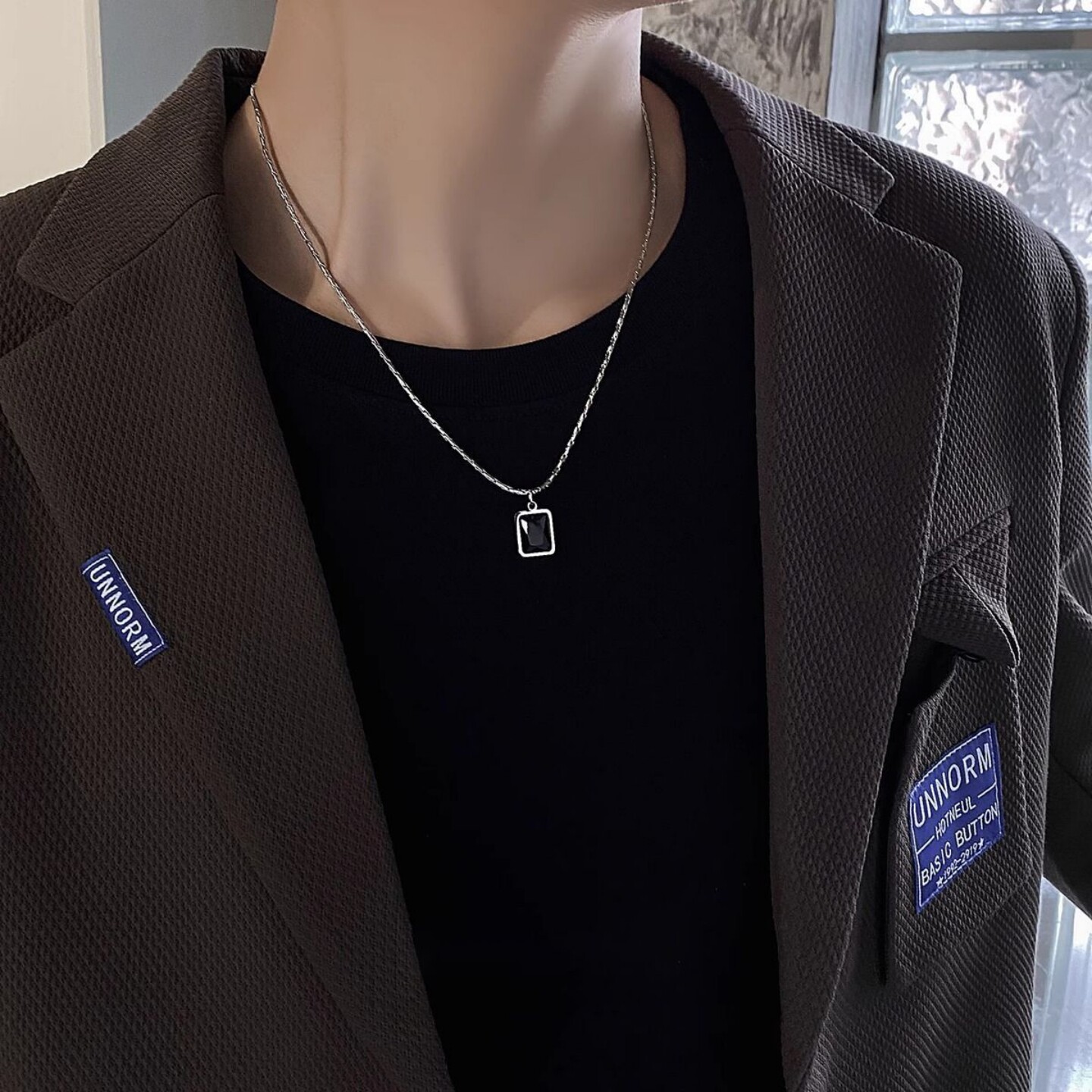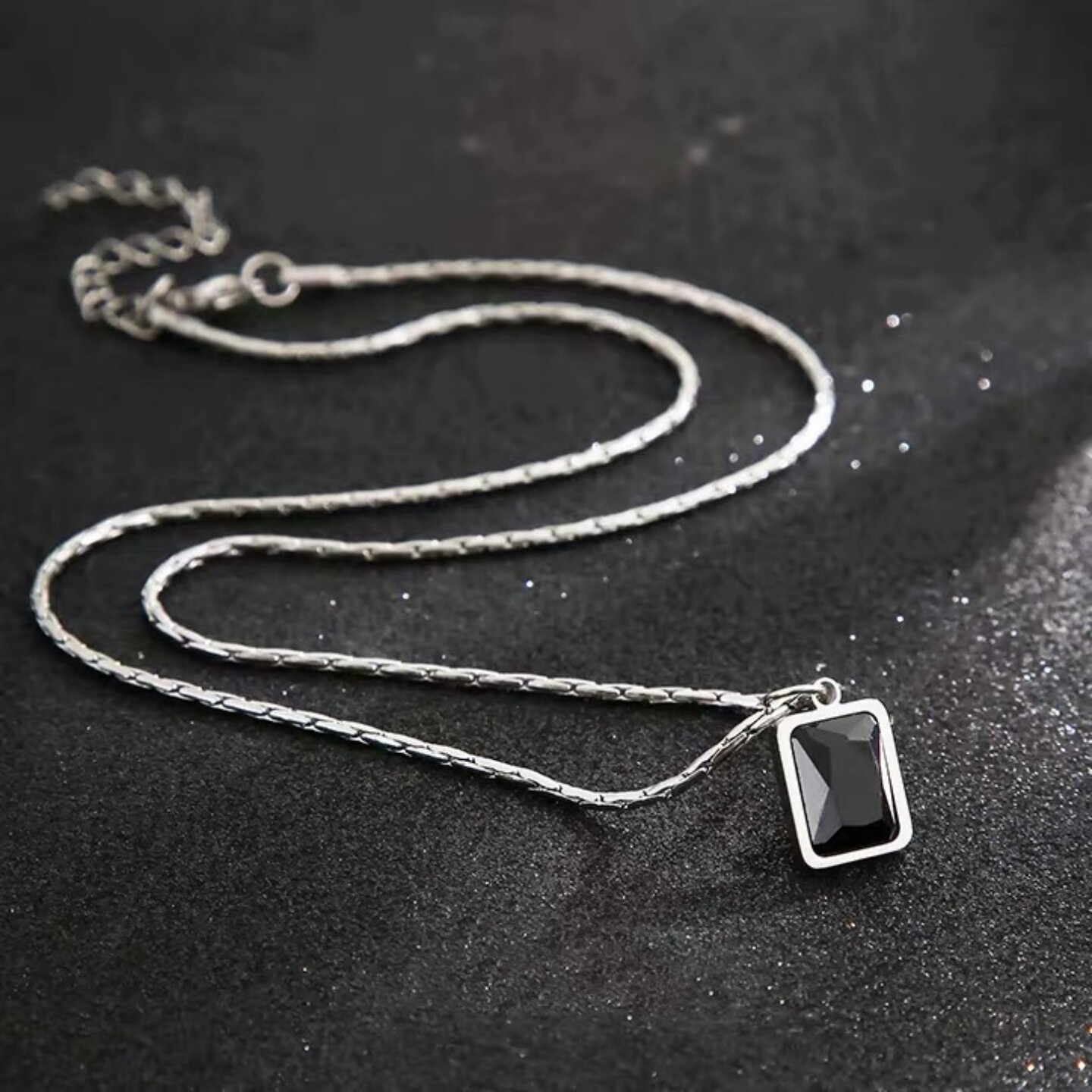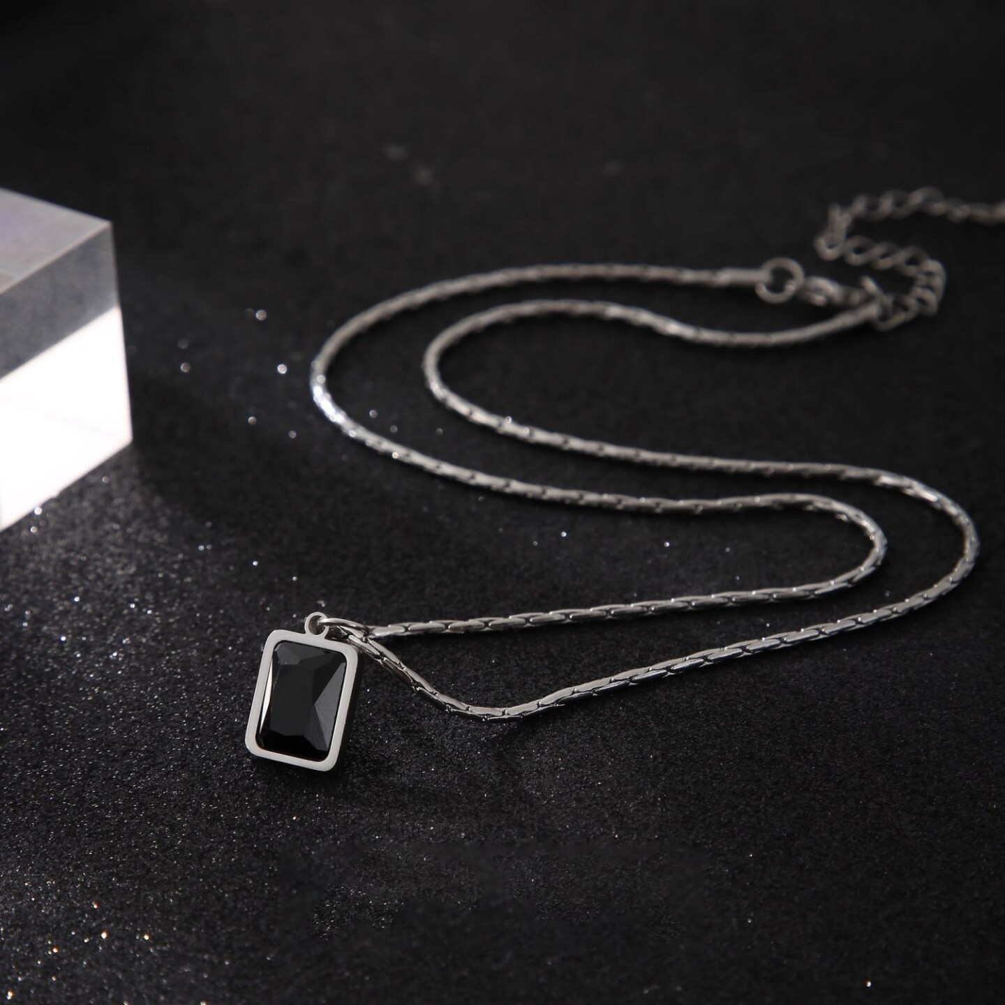 项链男款小众设计高级感锁骨链轻奢简约钛钢男生挂坠黑色方块吊坠