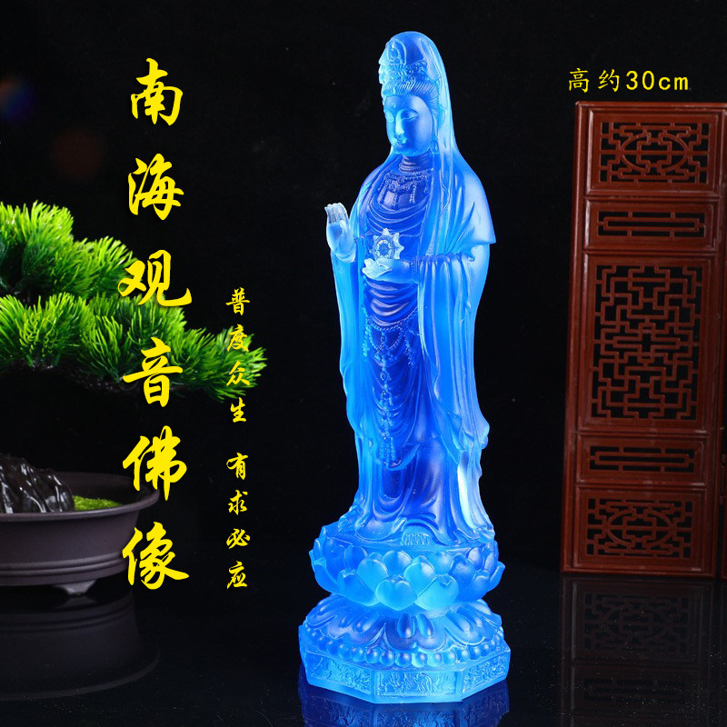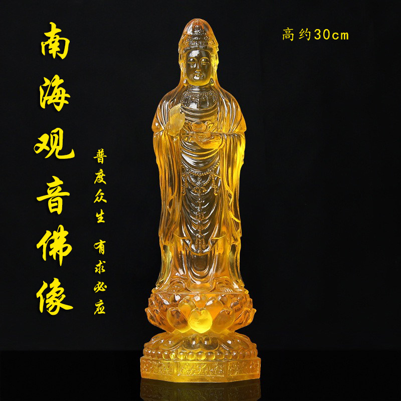 观音大士佛像中式琉璃鎏金南海观世间娘娘菩萨佛像树脂神台摆件