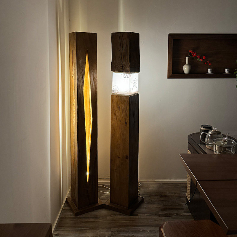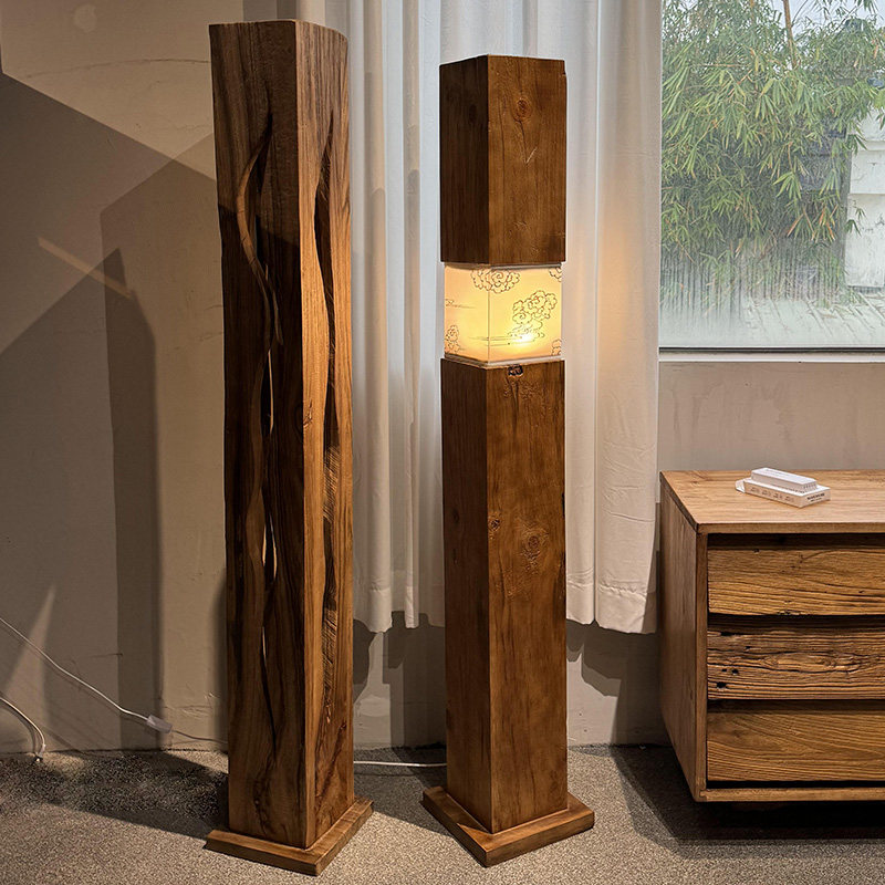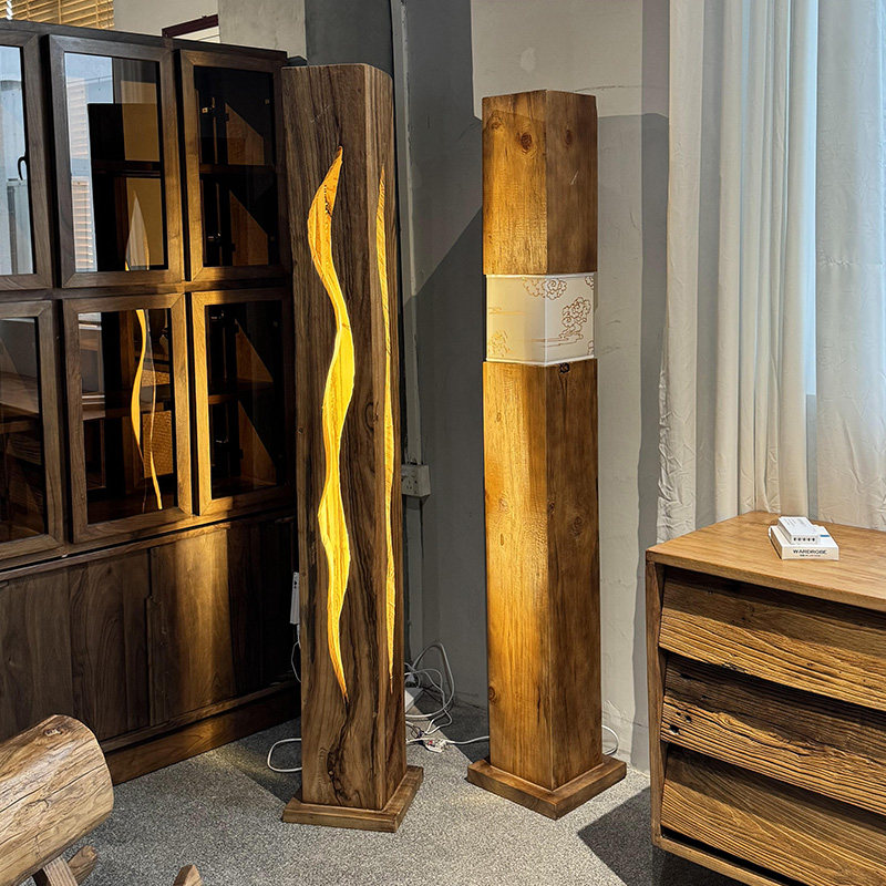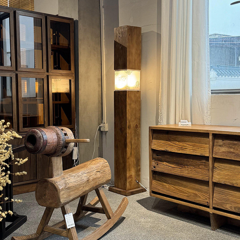 老榆木侘寂落地灯摆件客厅卧室床头灯民宿装饰复古原木风立式台灯