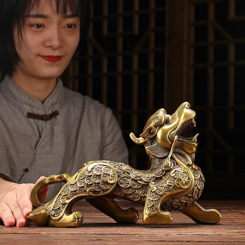 速发皮丘纯铜貔貅招财摆件一对大号铜像客厅家居办公室桌乔迁开业