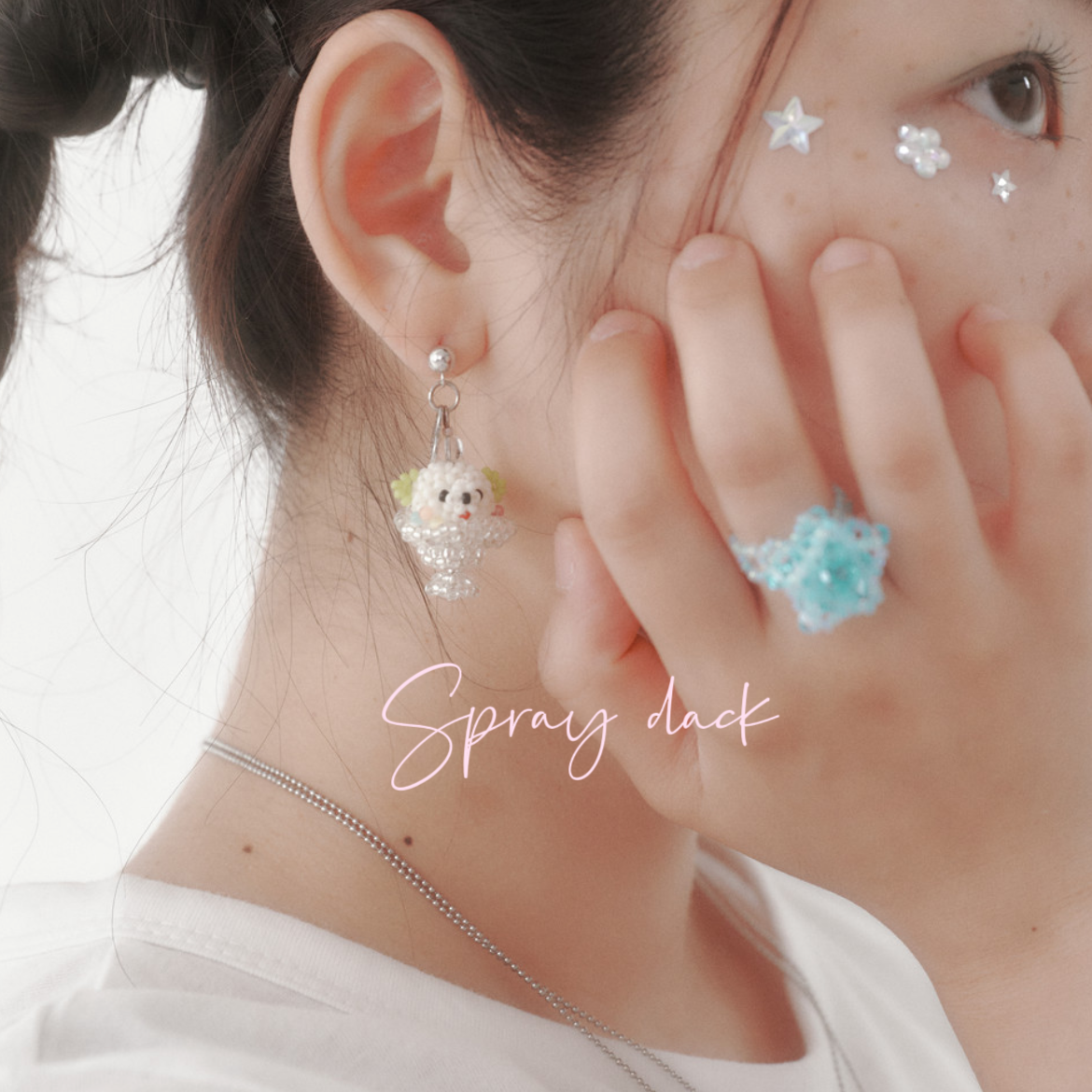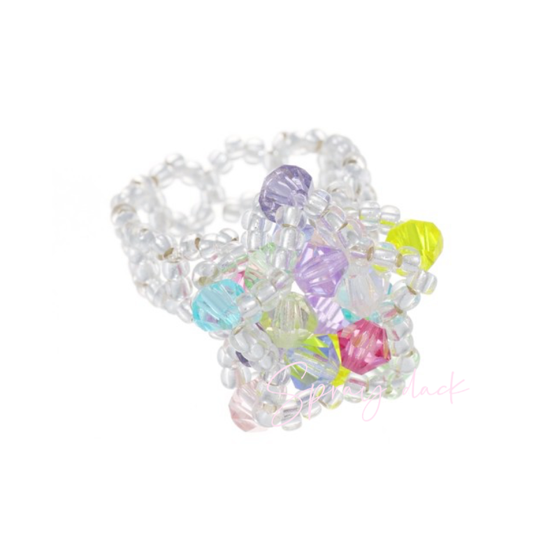 甜心少女彩虹水晶星星戒指可爱串珠元气甜妹swing韩国ins指环耳环
