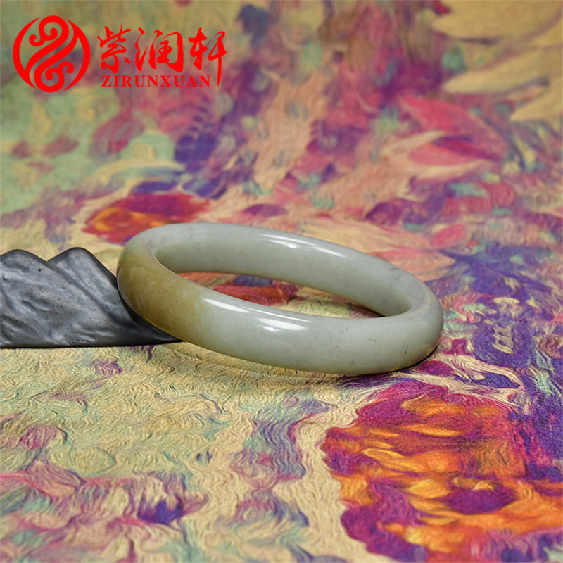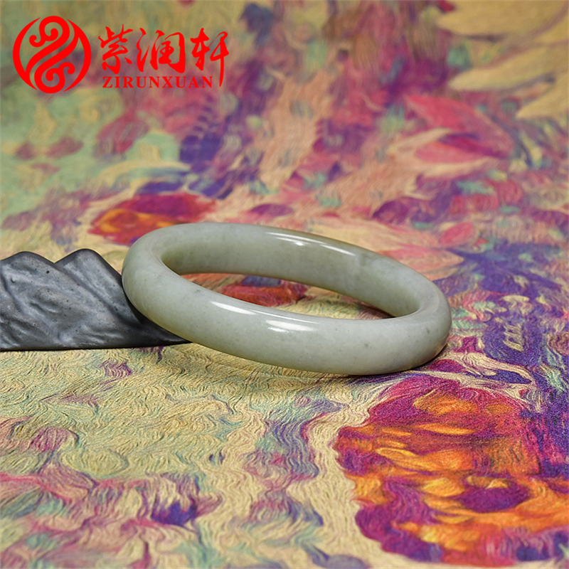 紫润轩新疆和田玉且末料糖青白籽料手镯60 6MM亚光玉镯收藏级