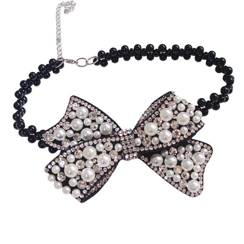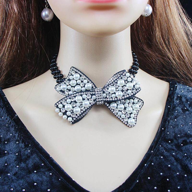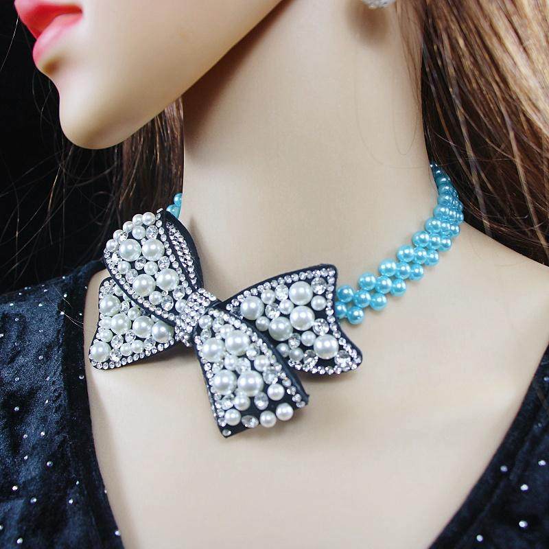 原创设计手工制作珍珠项链女锁骨链水钻蝴蝶装饰领结颈带项圈配饰