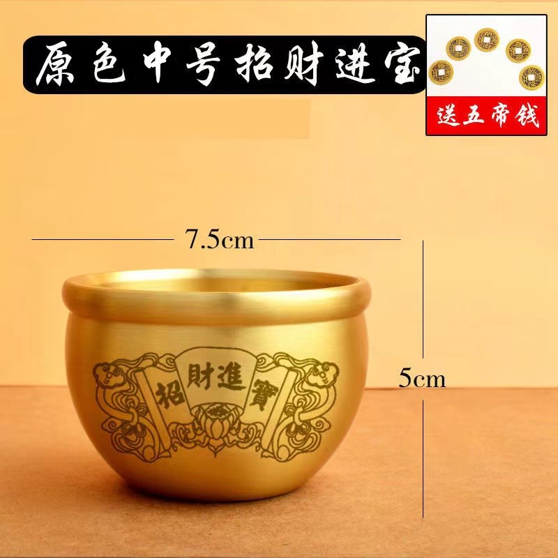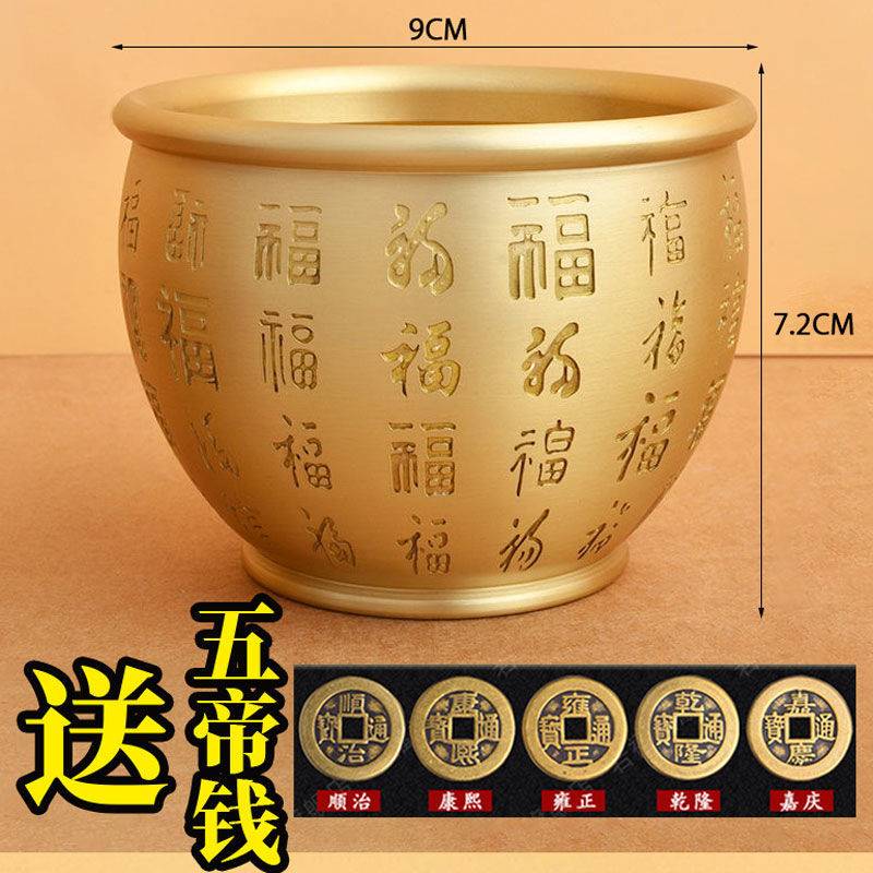 纯黄铜福字百福小米缸纯黄铜福缸招财碗聚财铜盆小的号铜缸聚宝盆