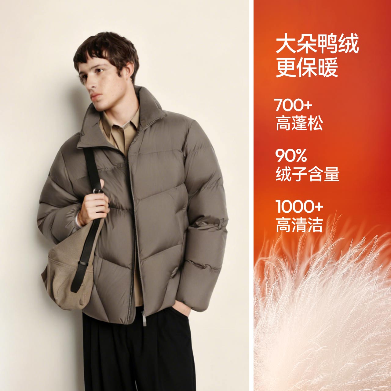 轻松|森马羽绒服男冬90绒子发热三防外套2025新款情侣立领面包服