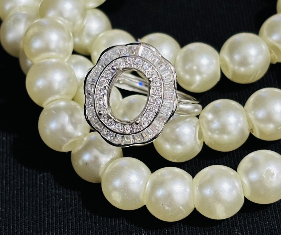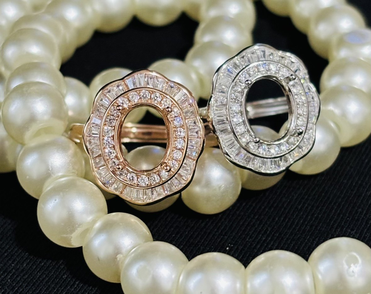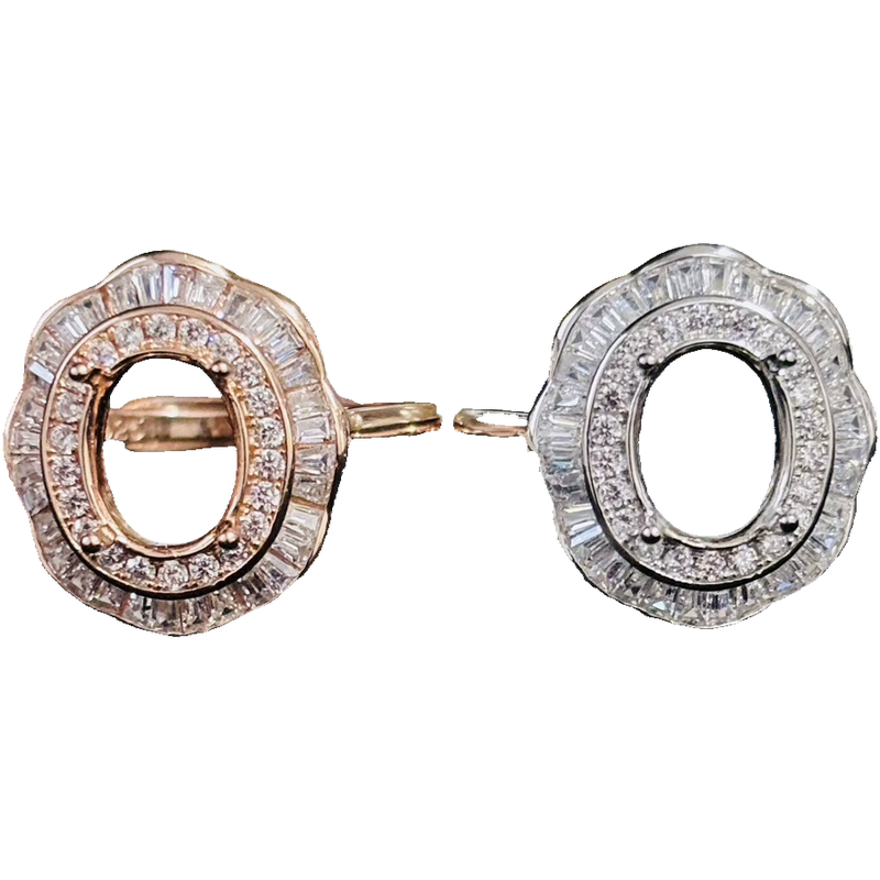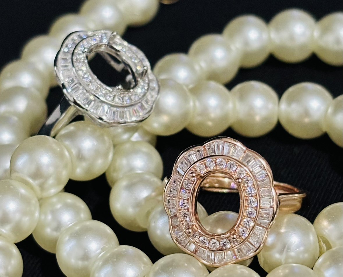 925银镀白金玫瑰金镶嵌空托戒指7*9/8*10MM定制宝石裸石DIY首饰新