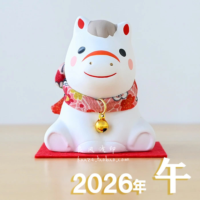 日本进口药师窑陶瓷2026生肖马年摆件日式创意礼物桌面吉祥物土铃