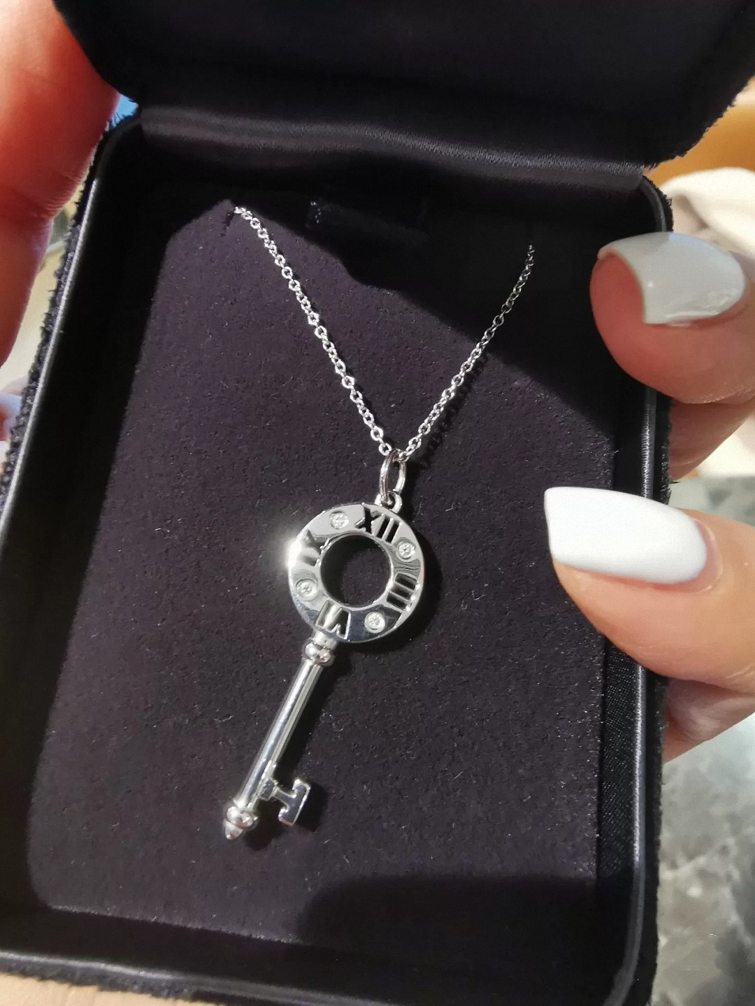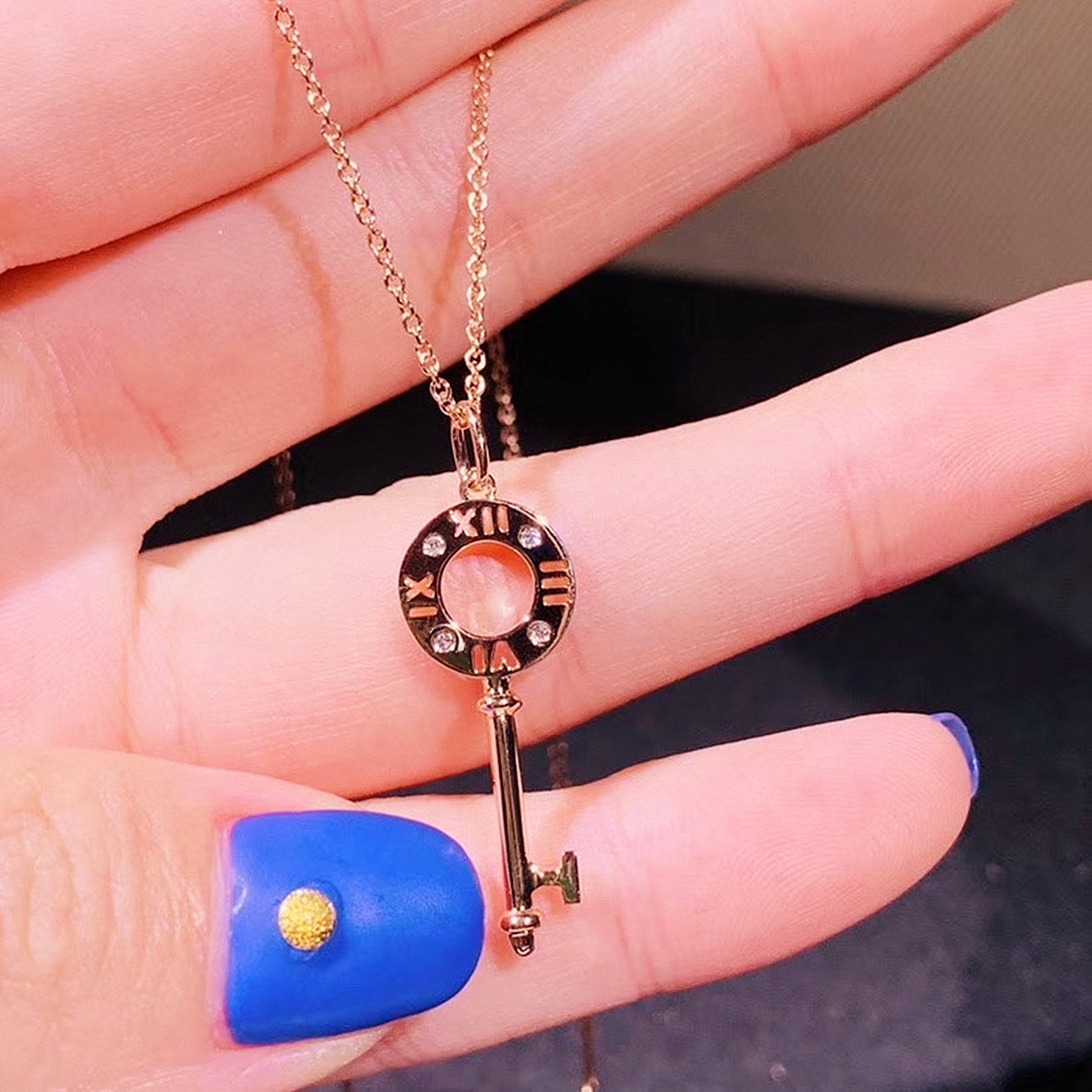 罗马数字钥匙项链潮 女纯银镀18K玫瑰金锁骨链长款毛衣链钻石吊坠