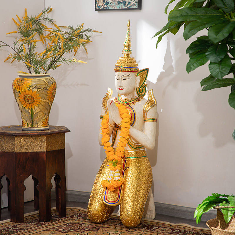 迎宾人物雕像落地跪佛摆件泰国风格酒店会所木制傣族装饰