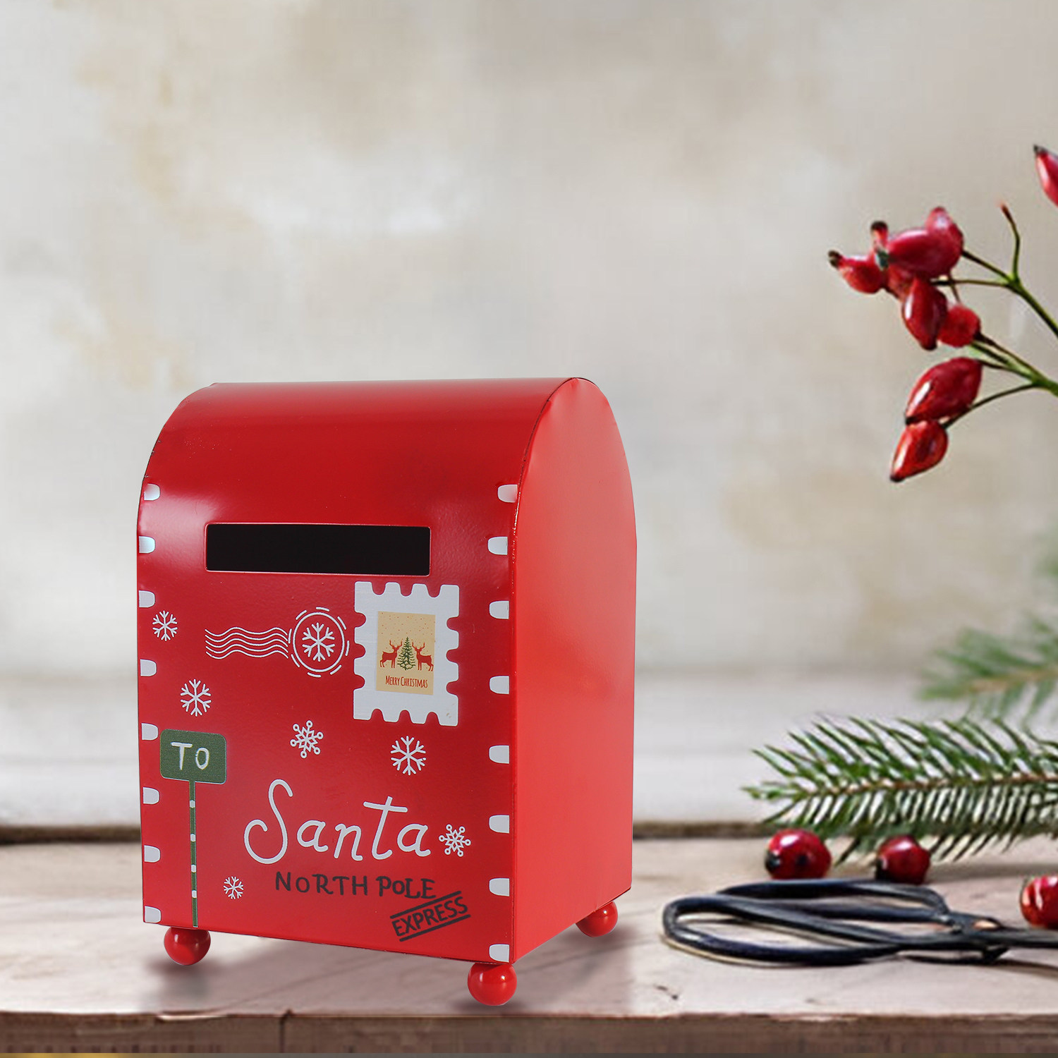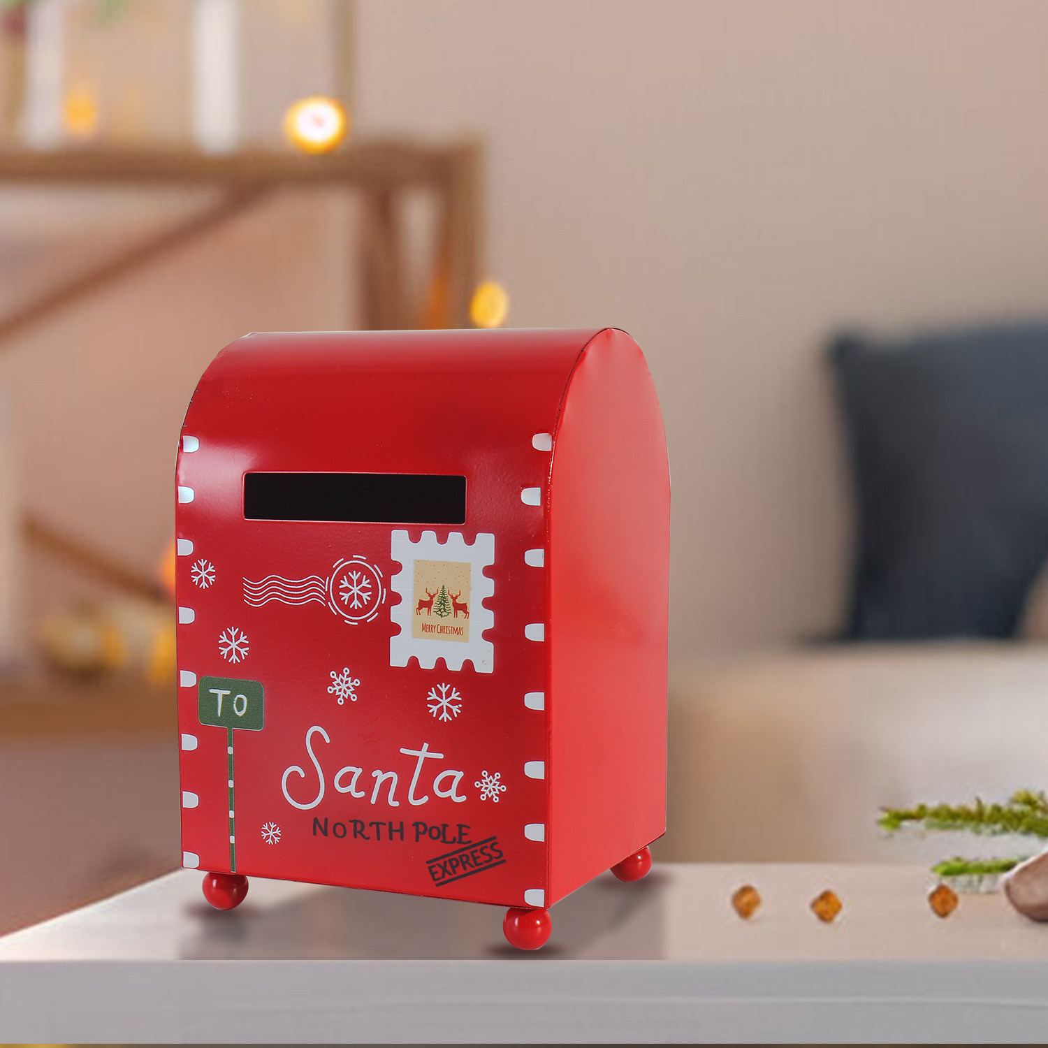 金属圣诞邮箱 - 圣诞老人的快递信件和礼物收集器,节日室内装饰