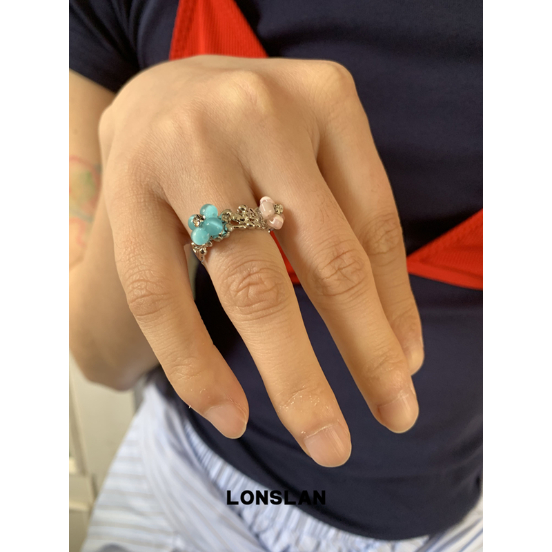 LONSLAN ACC 2025ss可爱彩色小花开口戒指百搭蓝色个性指环