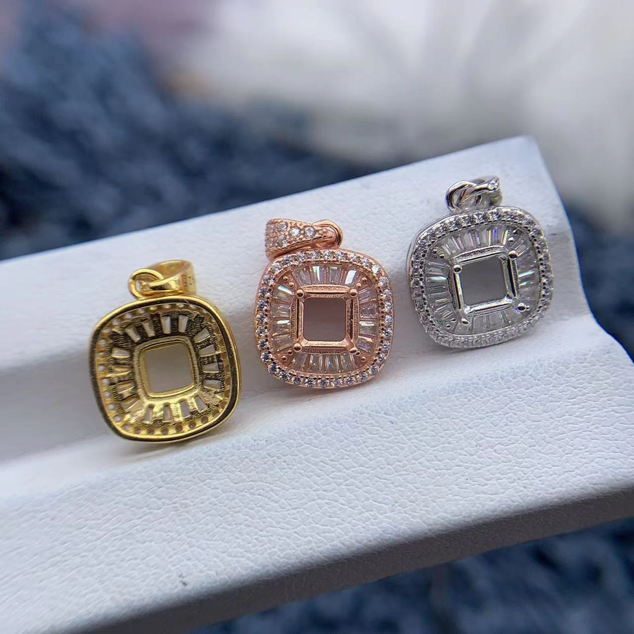 S925纯银吊坠空托正方形5*5mm时尚精致奢华钻石闪亮经典百搭饰品