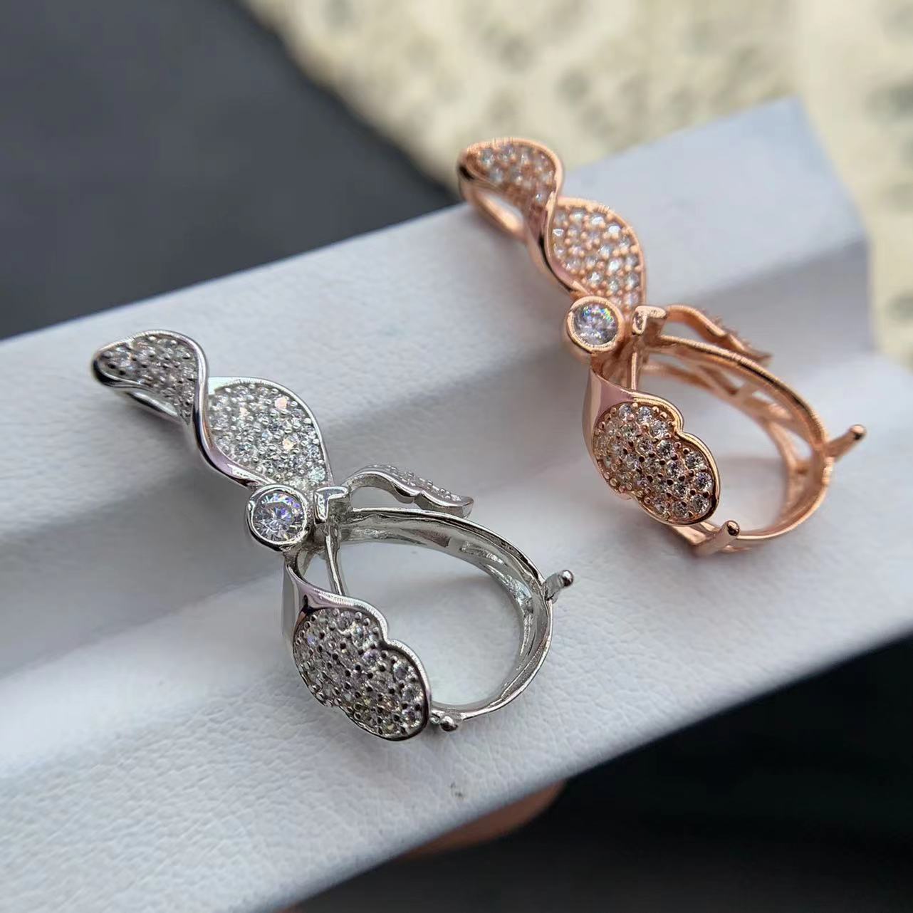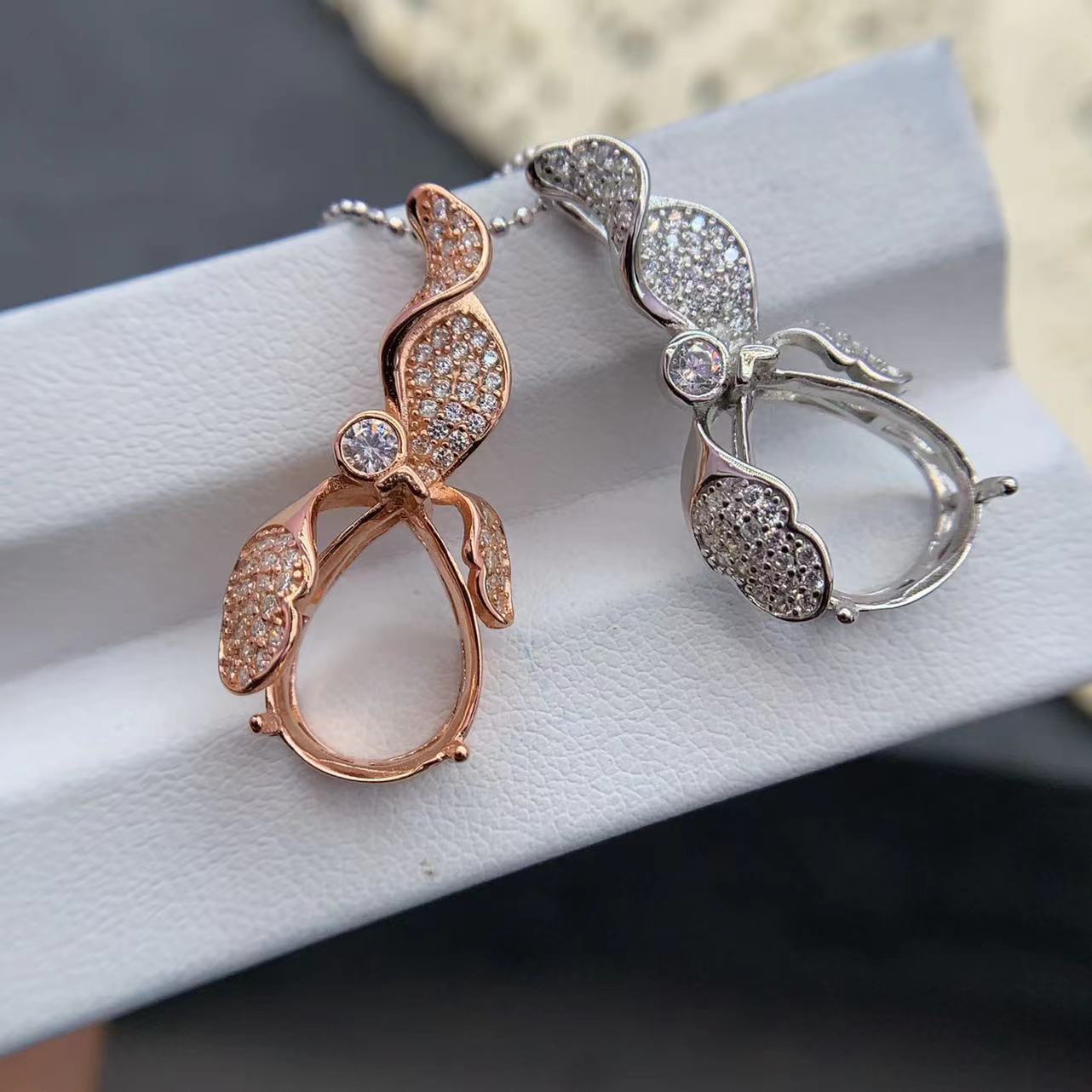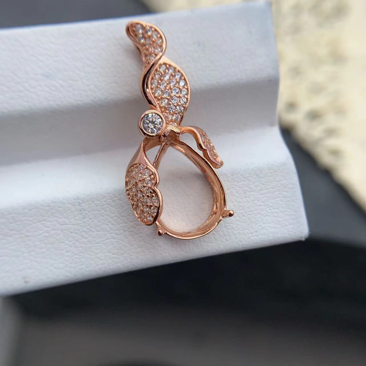 S925纯银吊坠空托水滴形10*14mm精致气质个性小众设计钻石点缀银