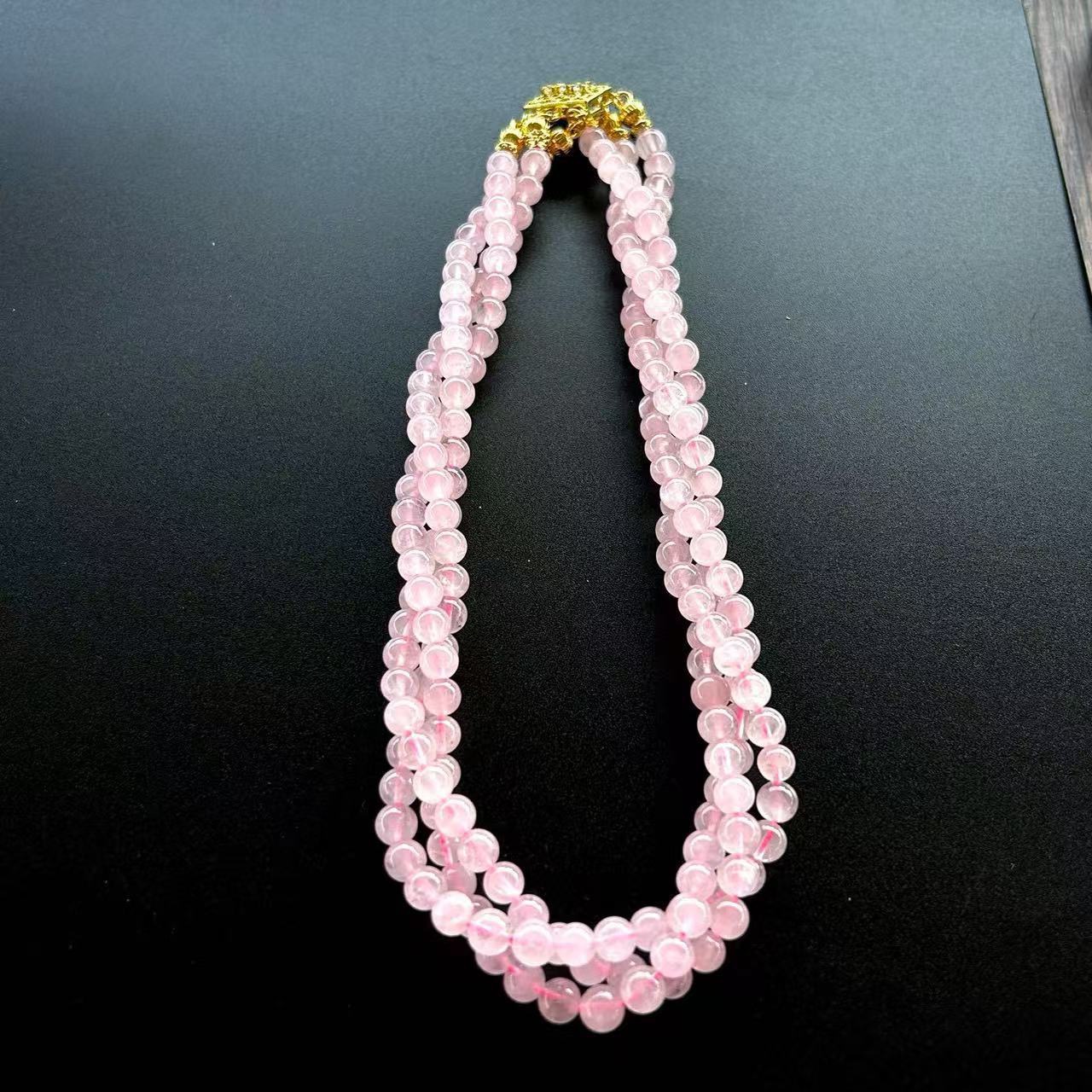 中古vintage法式复古天然粉水晶多层项链新中式简约清透旗袍配饰