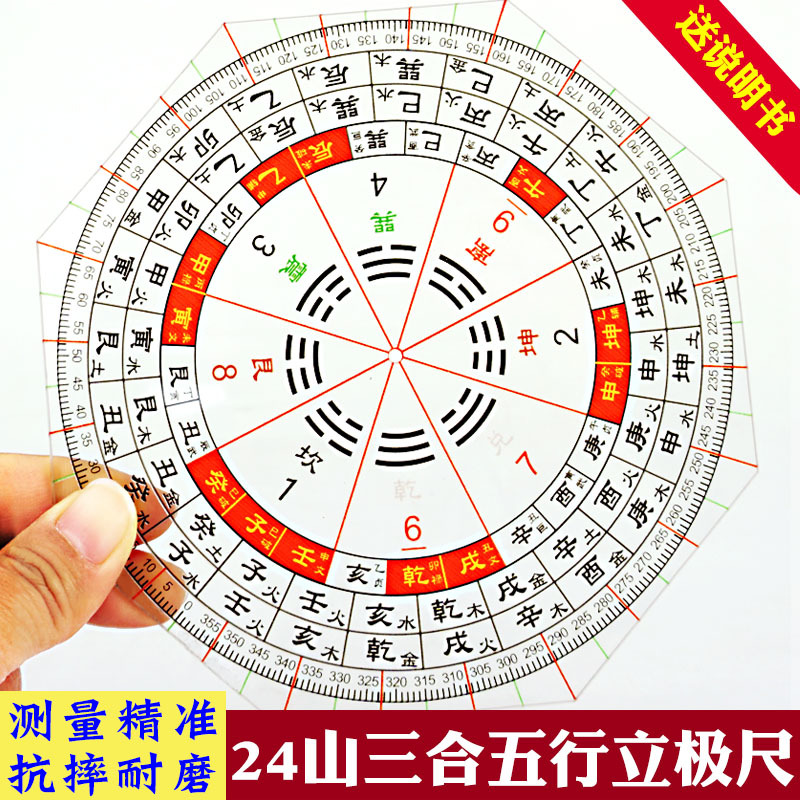 二十四山三合五行立极尺高精度罗盘绘图尺定位仪八边形立极规