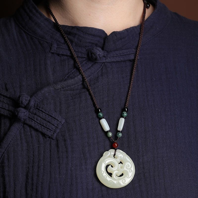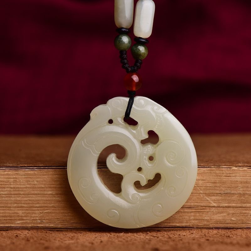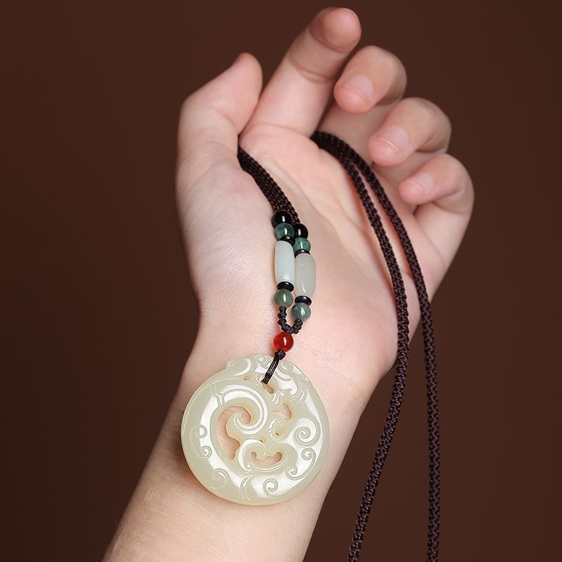 和田白色玉镂空龙吊坠龙形毛衣链玉石吊坠女玉坠玉佩男项链百搭