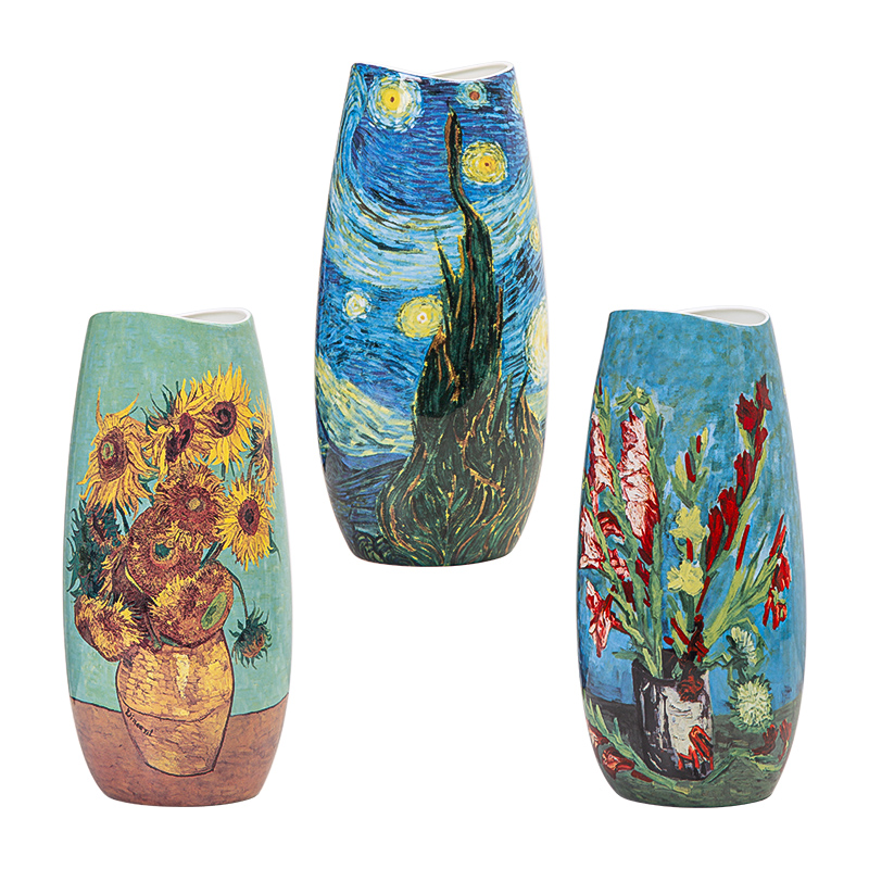 梵高向日葵陶瓷花瓶田园干花插花复古餐客厅家居装饰摆件骨瓷礼品