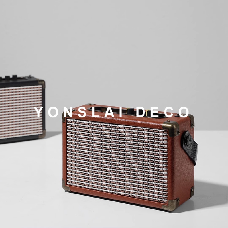现代复古蓝牙手提音响收音机摆件轻奢木制皮革音箱样板间客厅软装
