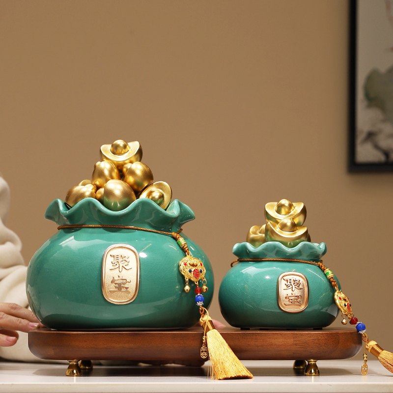 新中式福财钱袋聚宝盆摆件店铺收银前台办公桌招财装饰品开业礼品