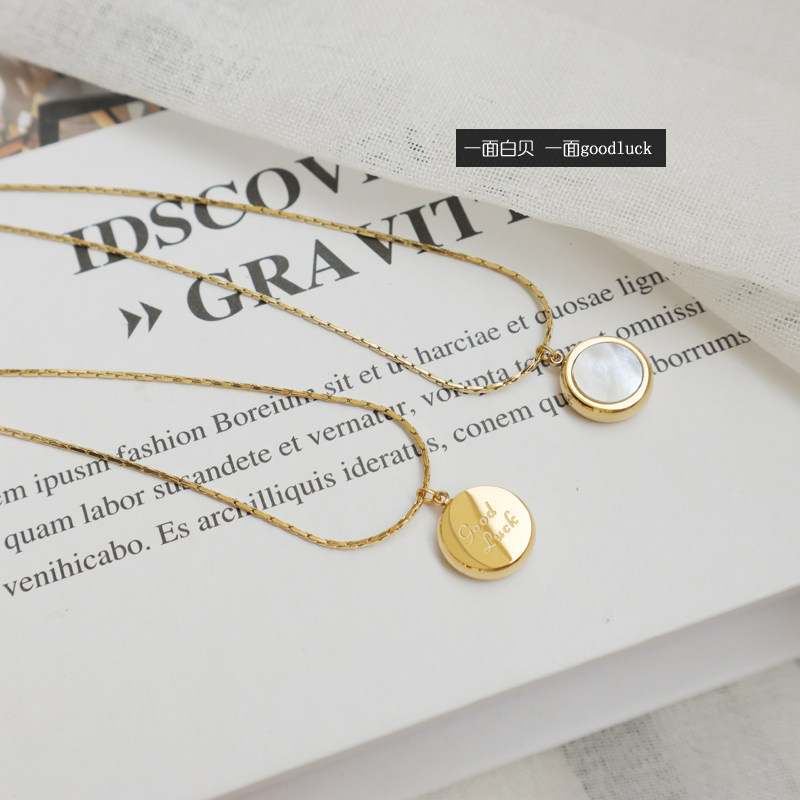 ZOXI不掉色幸运双面白贝金币项链轻奢小众爆款锁骨链2025年新款女