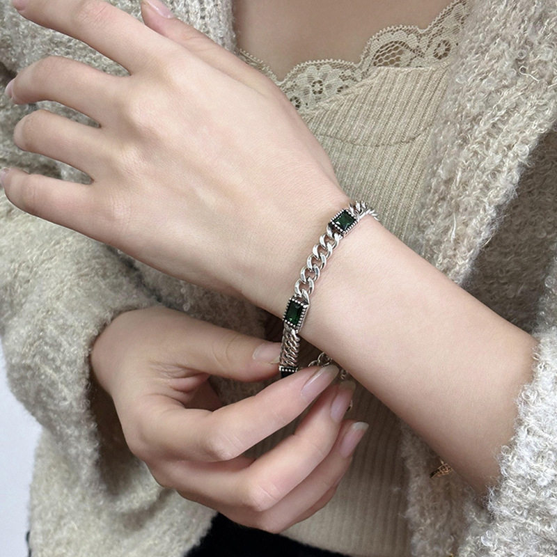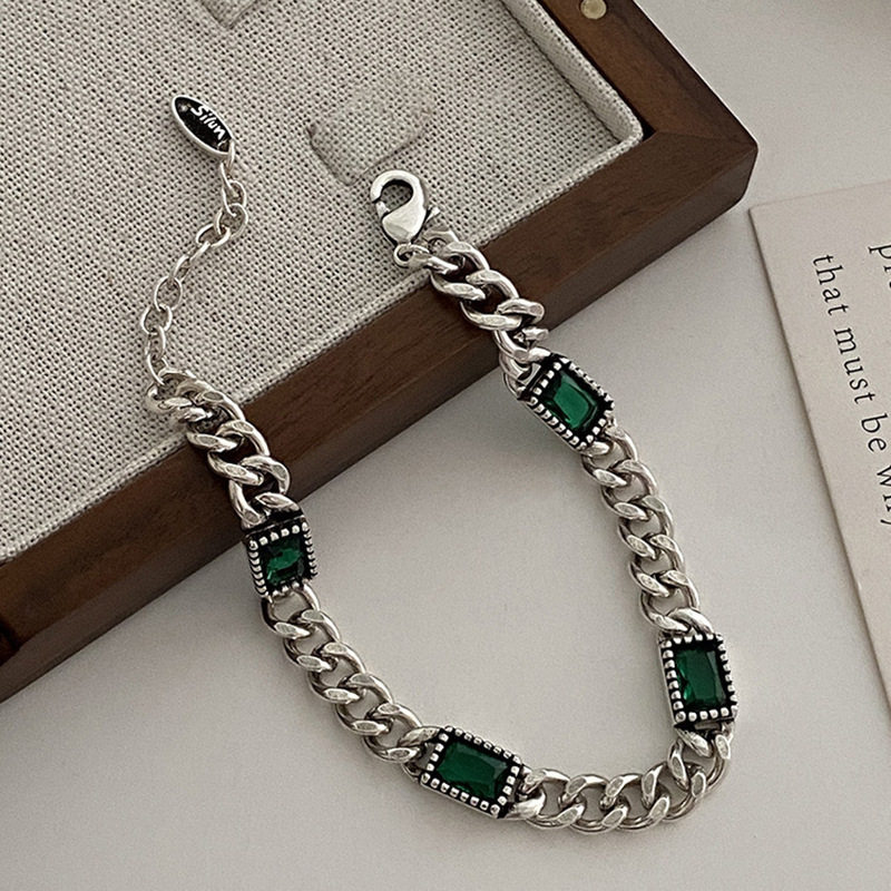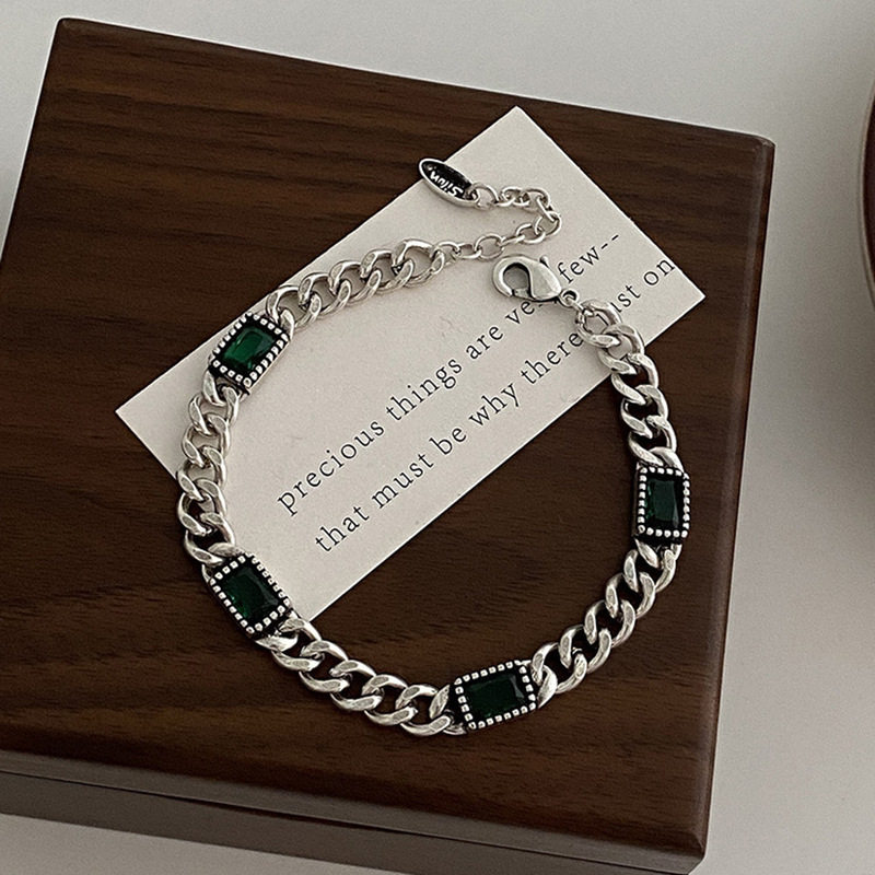 新款高贵绿色石头链条手链复古做旧轻奢小众设计手环