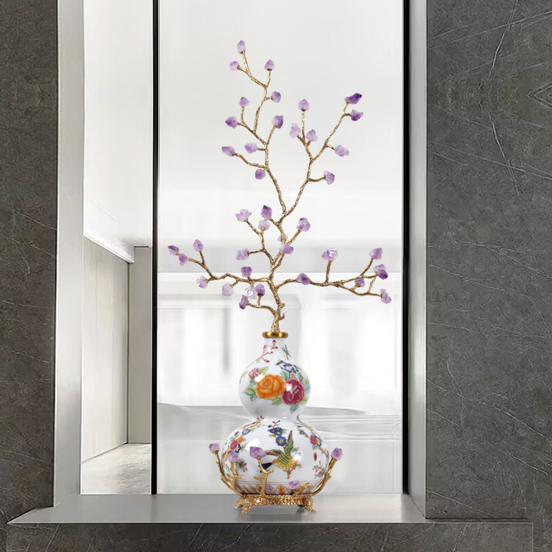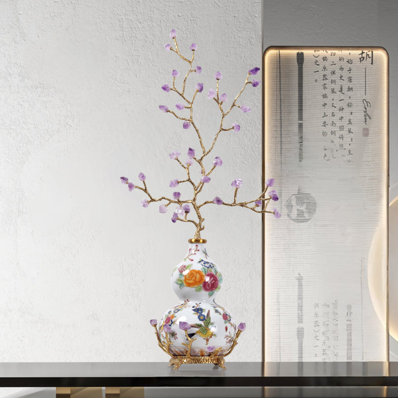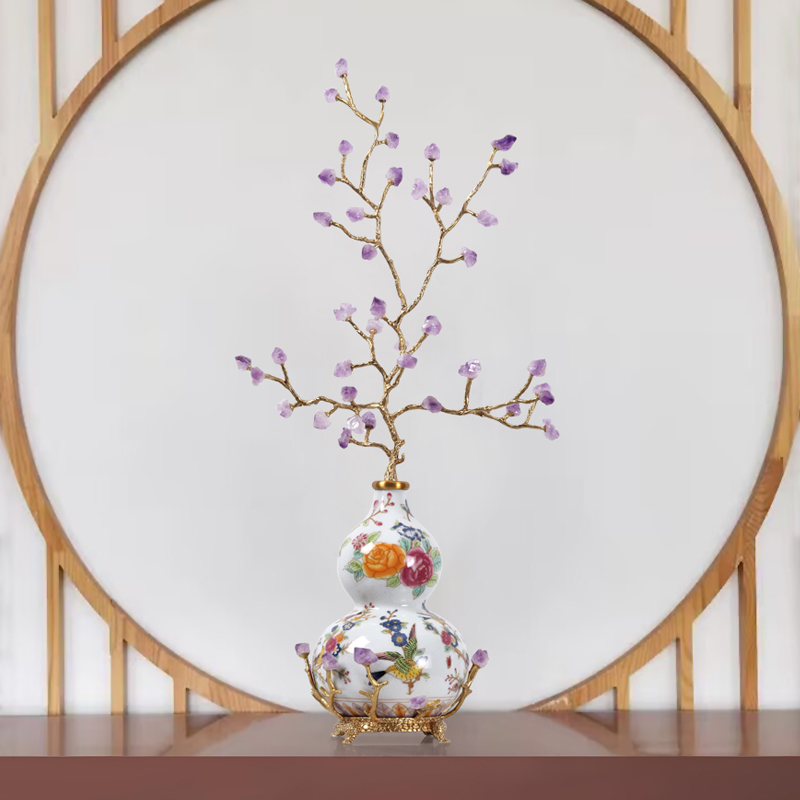 紫水晶花开富贵陶瓷葫芦工艺品样板房酒店别墅入户玄关艺术摆件