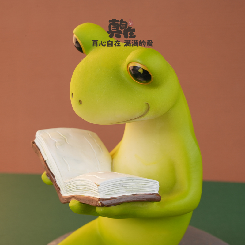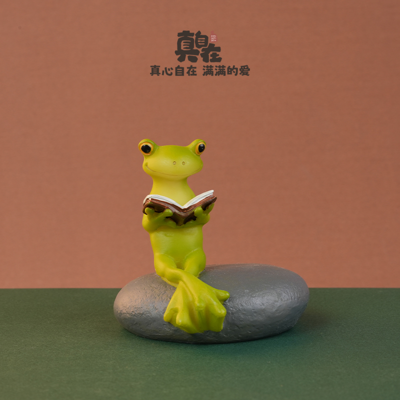 日式卡通看书青蛙摆件创意花园庭院微景观布置花盆鱼缸造景装饰品
