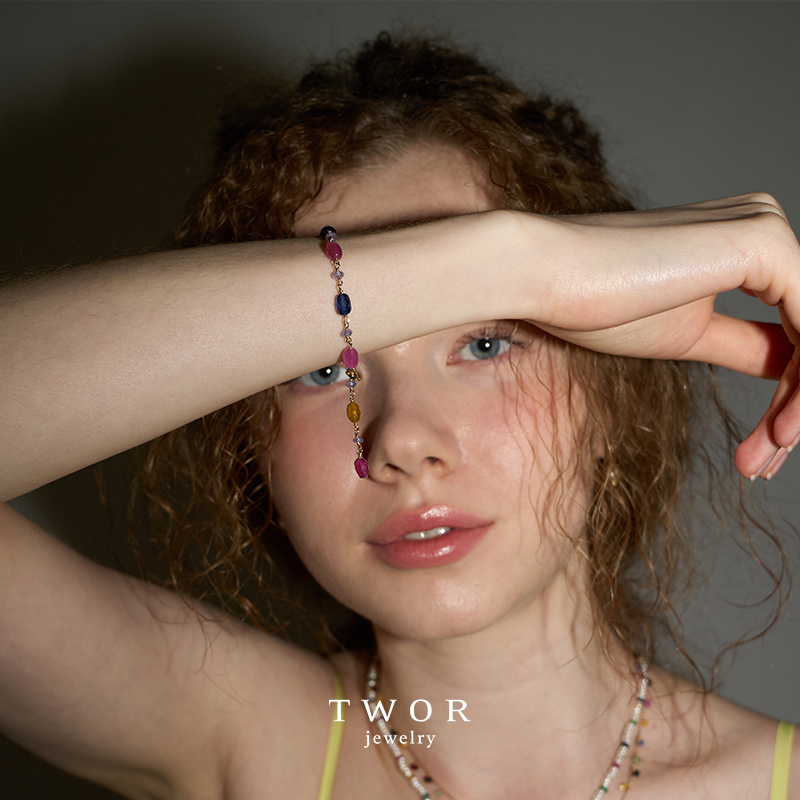 TWOR/手工房彩色蓝宝石坦桑石14kgf手链高档轻奢小众手饰礼物女