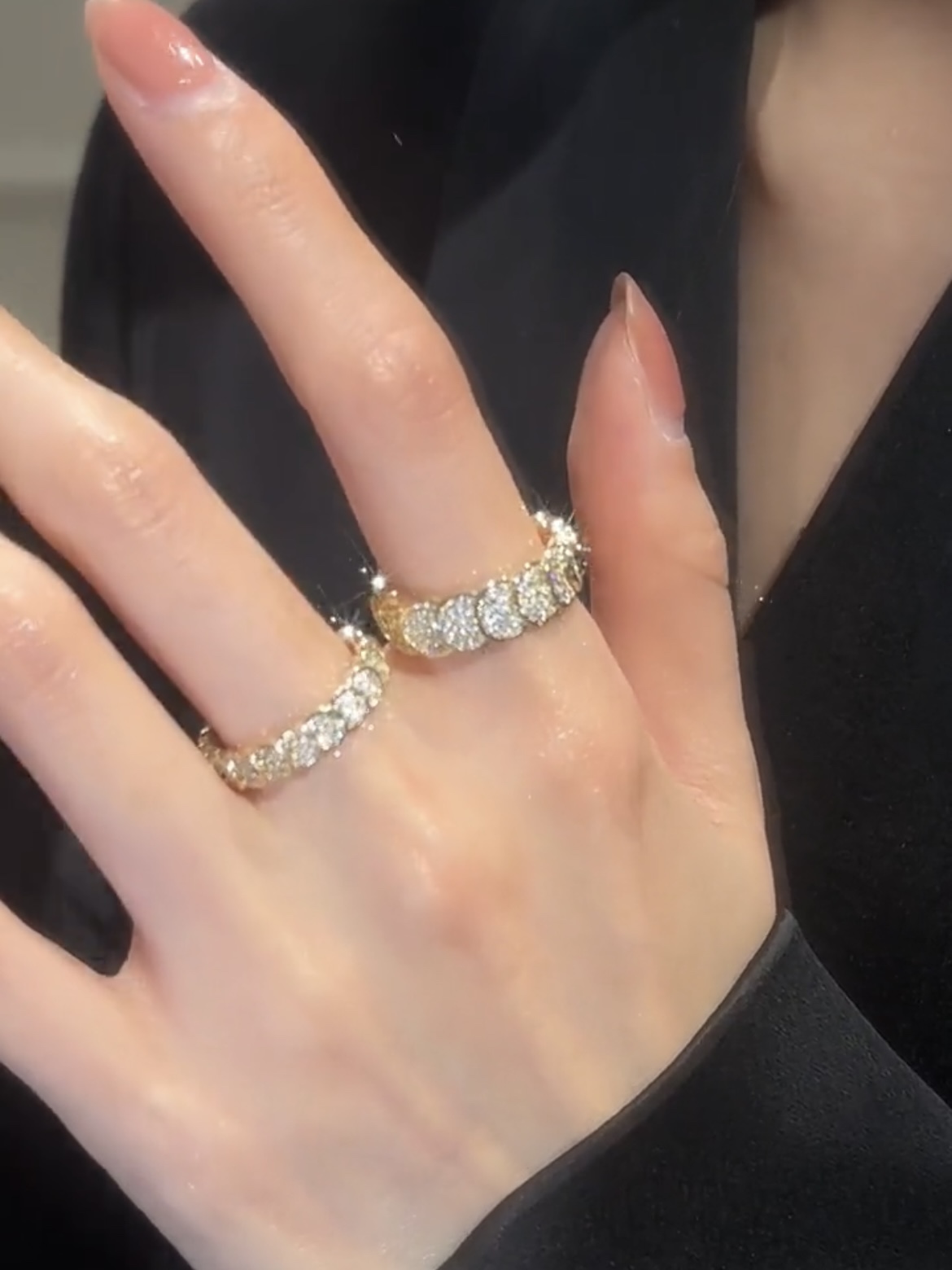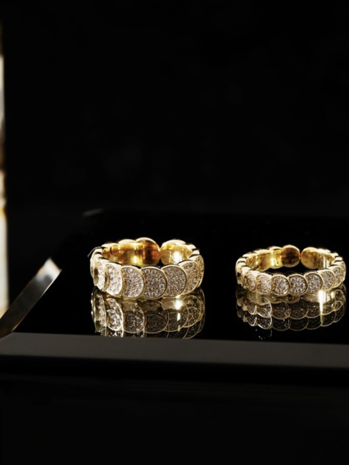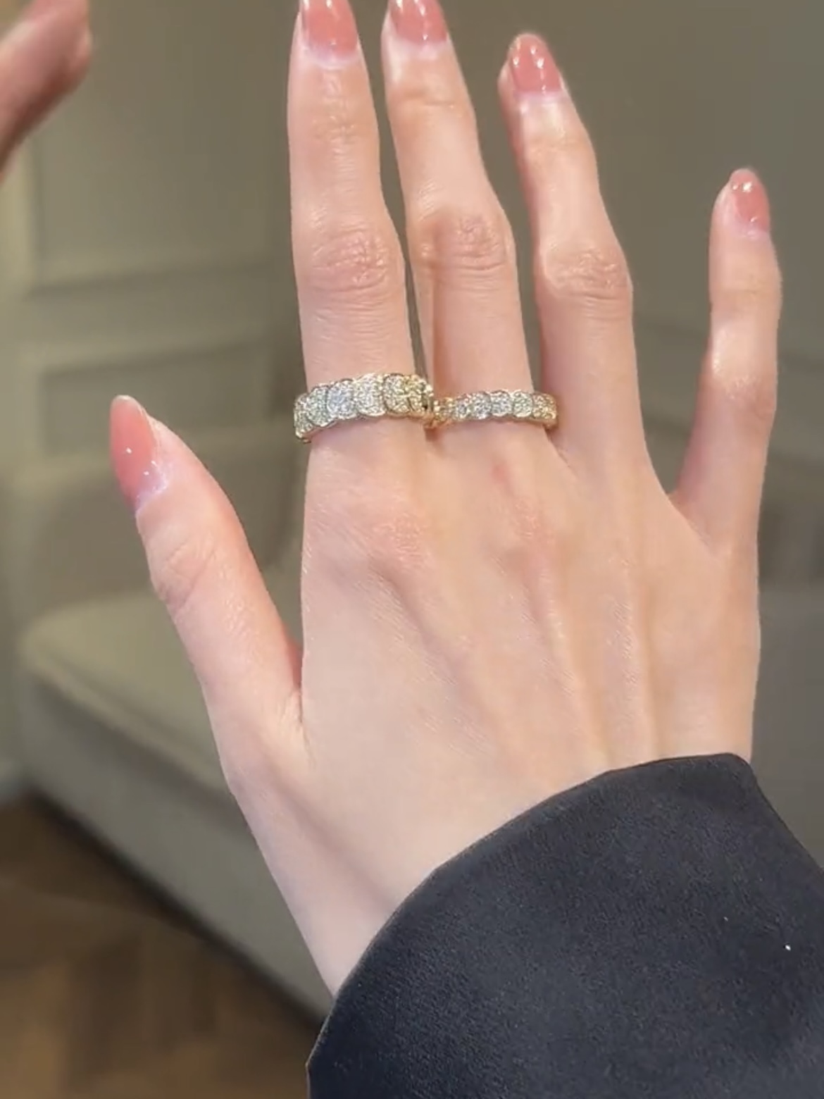 高级感铜钱轻奢满钻戒指小众个性开口可调节指环新款食指戒女