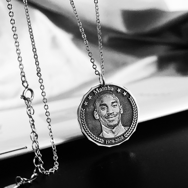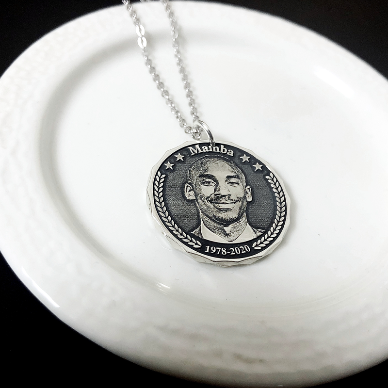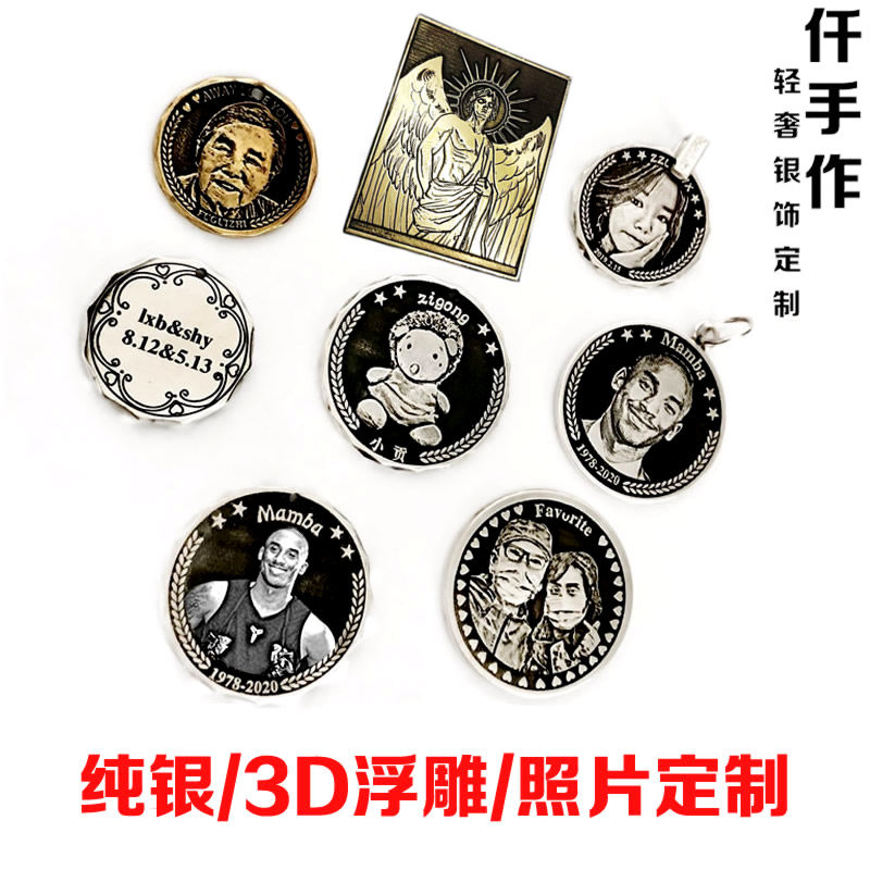 纯银手工雕刻照相片银饼吊坠项链生日情人节男女闺蜜朋友纪念礼物