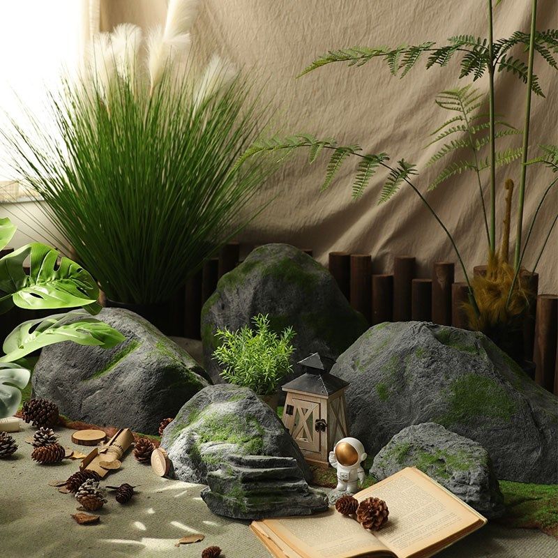 庭院假山仿真石头鱼缸橱窗花园造景楼梯装饰品大型摆件绿植微景观