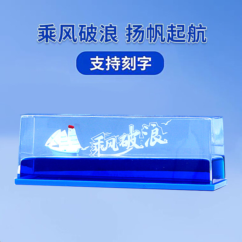 乘风破浪小帆船摆件蓝色大海治愈系创意液体一帆风顺海洋桌面礼物