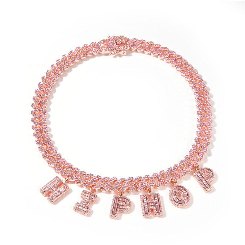 新款锆石字母定制古巴链条形粉色DIY拼接古巴链情侣个性手链项链