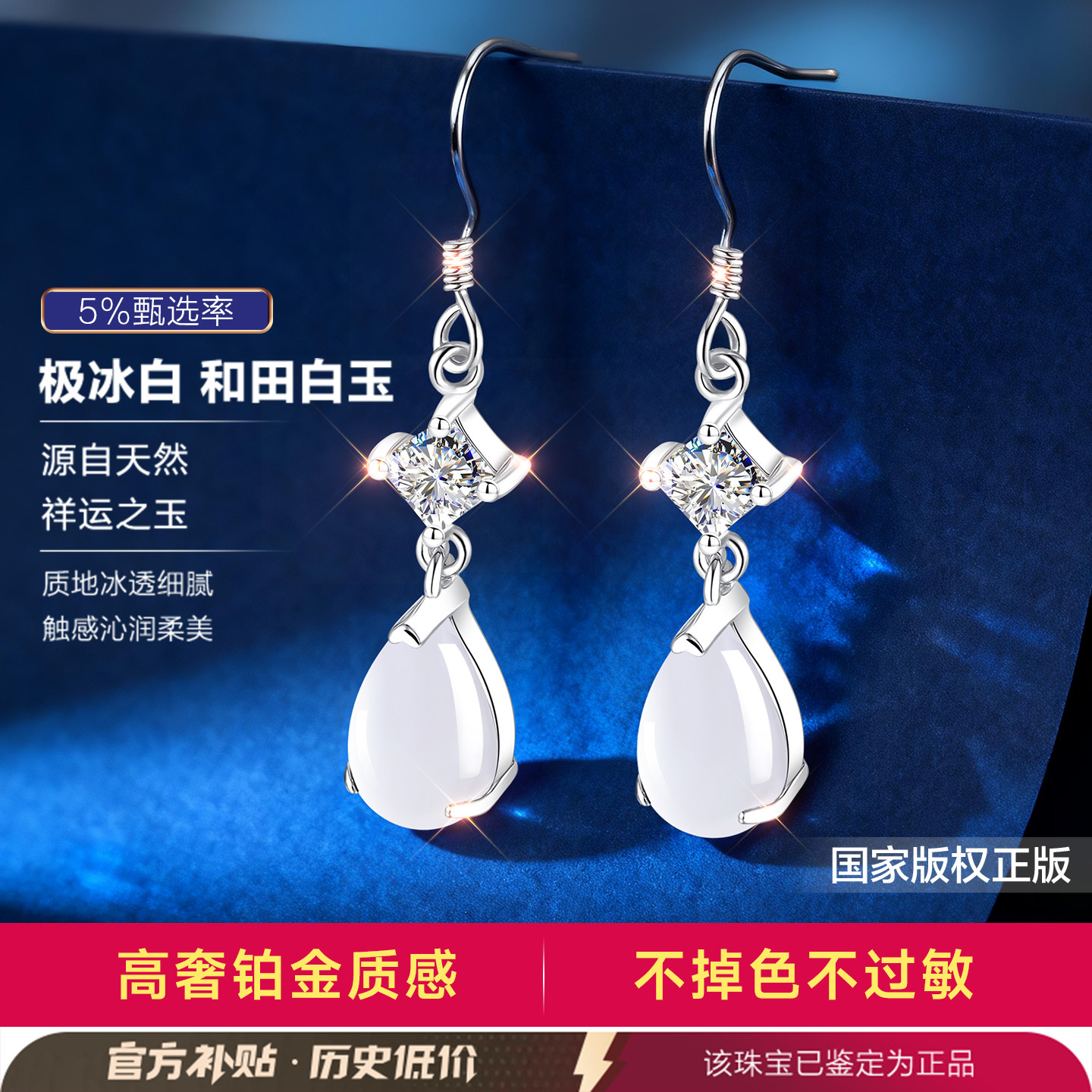和田玉纯银项链耳环套装女款女士女白玉吊坠银镶玉送妈妈生日礼物