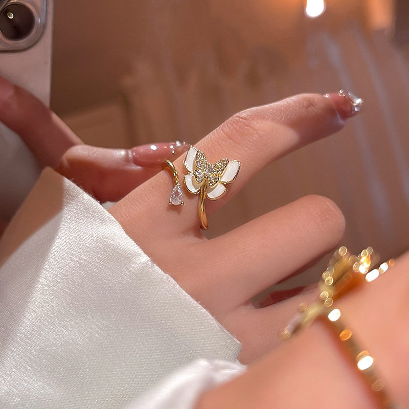 双层蝴蝶戒指女小众设计指环2026新款爆款轻奢高级感食指开口戒女
