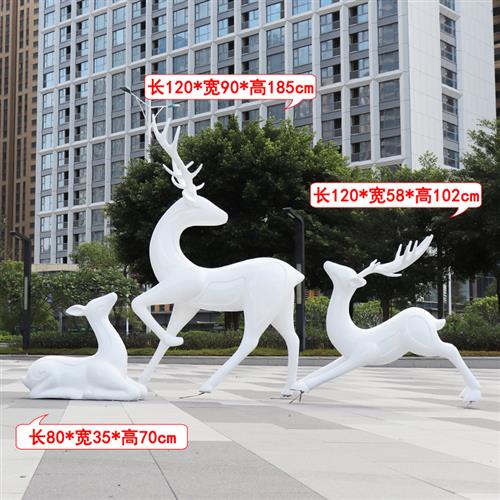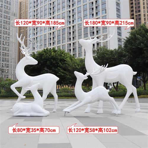 户外抽象几何白鹿玻璃钢雕塑景小区公园林仿铜梅花鹿景观装饰摆件