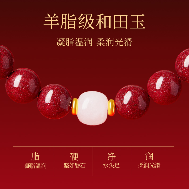 福禄纪官方旗舰店朱砂手串正品天然和田玉转运珠手链女本命年礼物