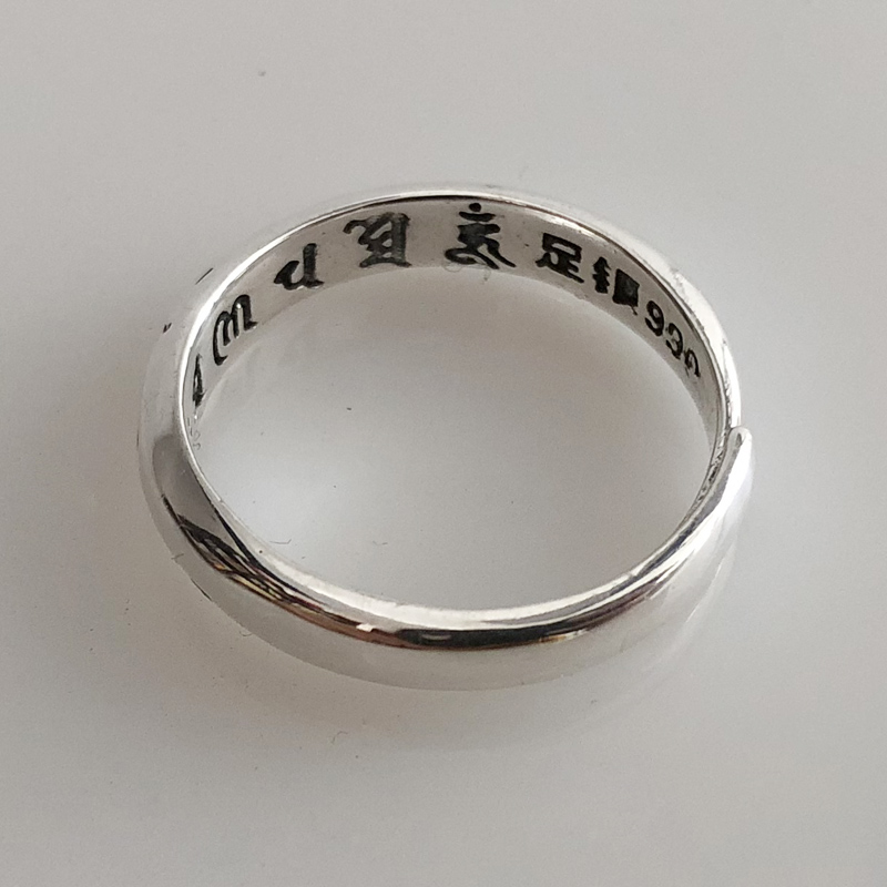 六字真言箴言纯银男女戒指时尚大气复古银饰可调节指环S925情侣款