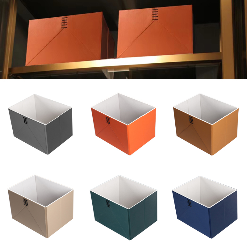 现代样板间衣帽间厅柜顶柜软装饰收纳盒皮革皮质储物盒订制收纳筐