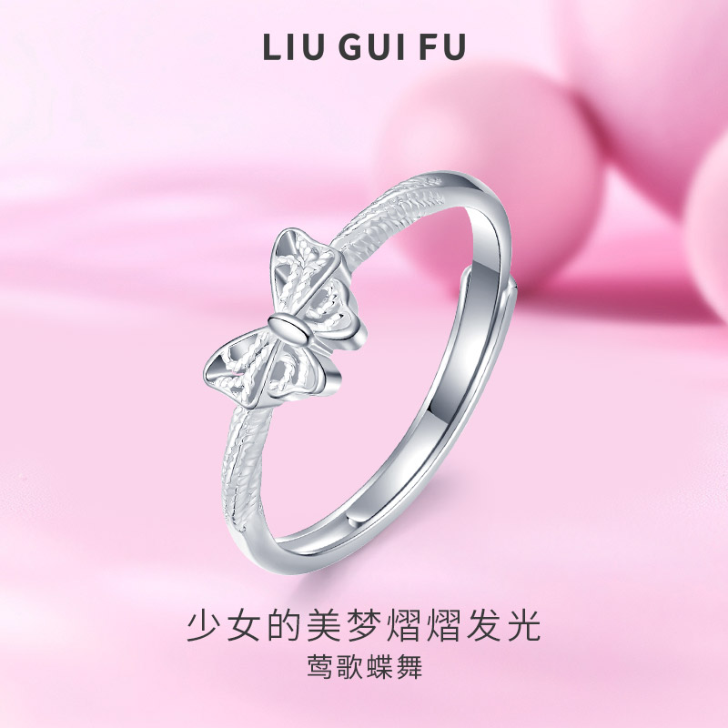 六桂福925纯银蝴蝶结戒指女轻奢小众精致配饰星星指环开口戒礼物