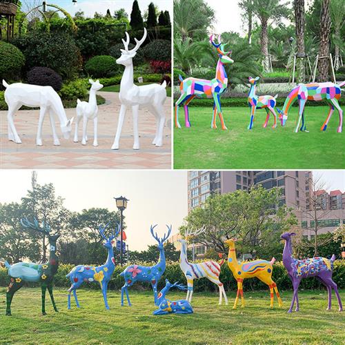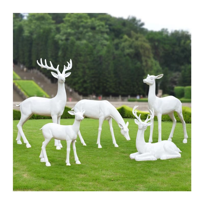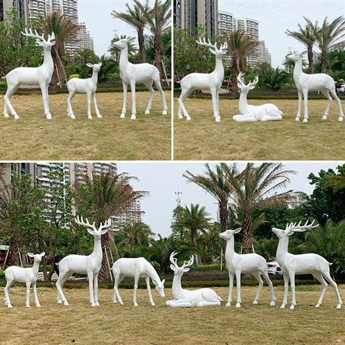 玻璃钢梅花鹿雕塑摆件户外园林景观仿真抽象白麋鹿动物美陈装饰品