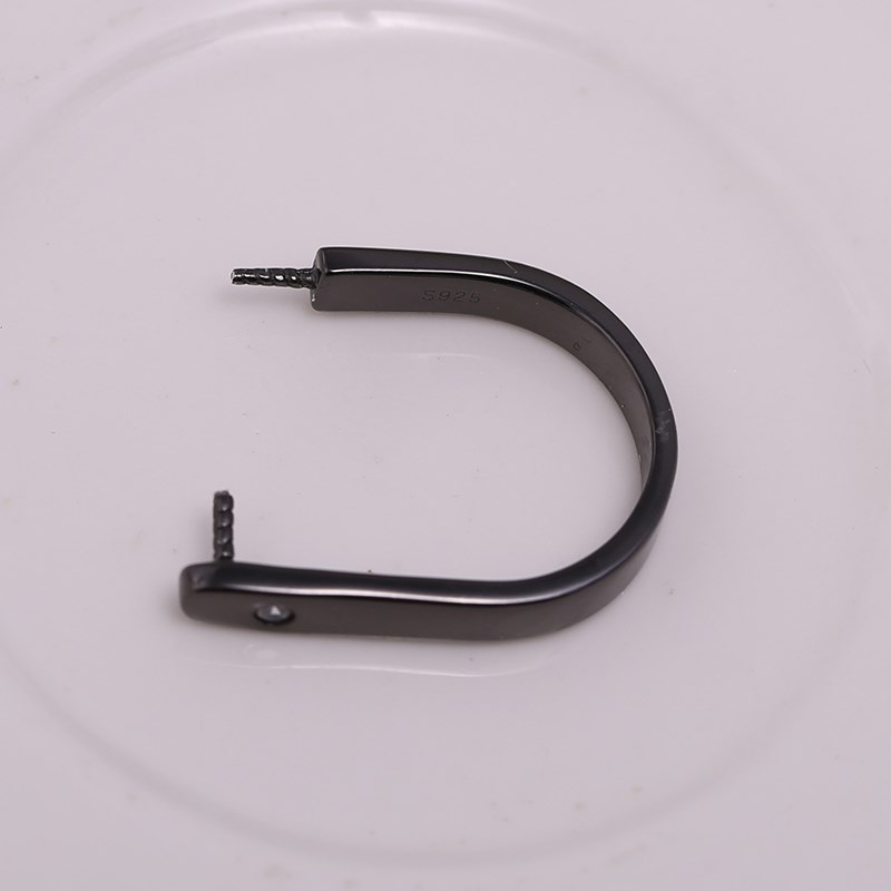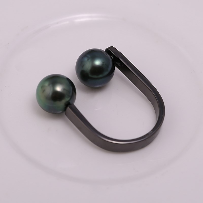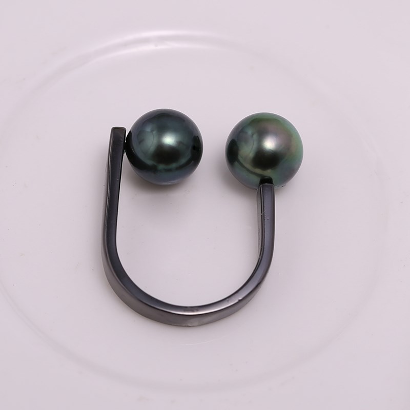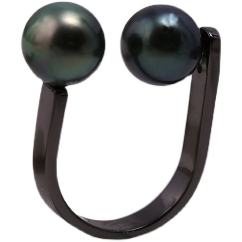 DIY配件S925纯银韩版v枪黑简约双珠戒指托指环珍珠戒托空托配饰品